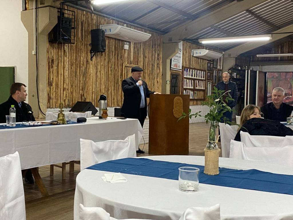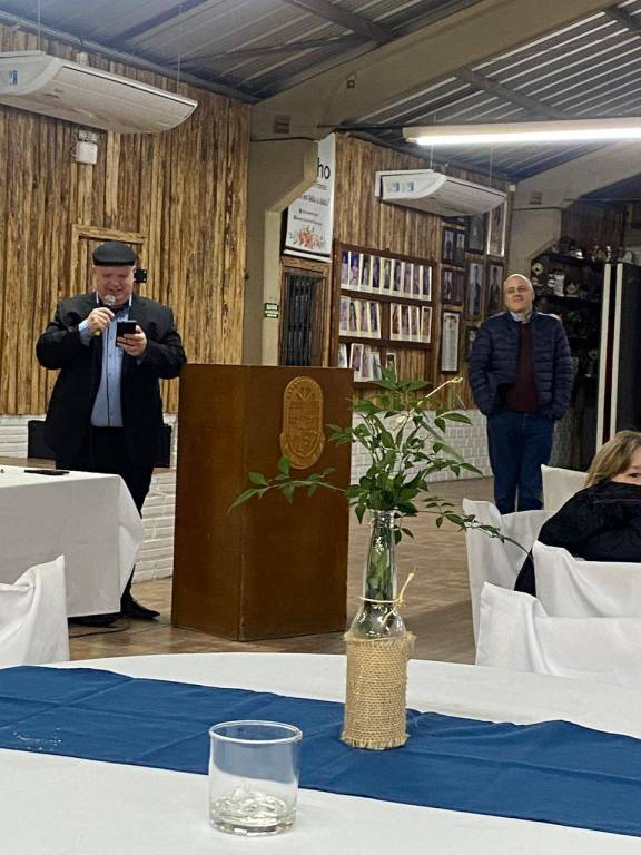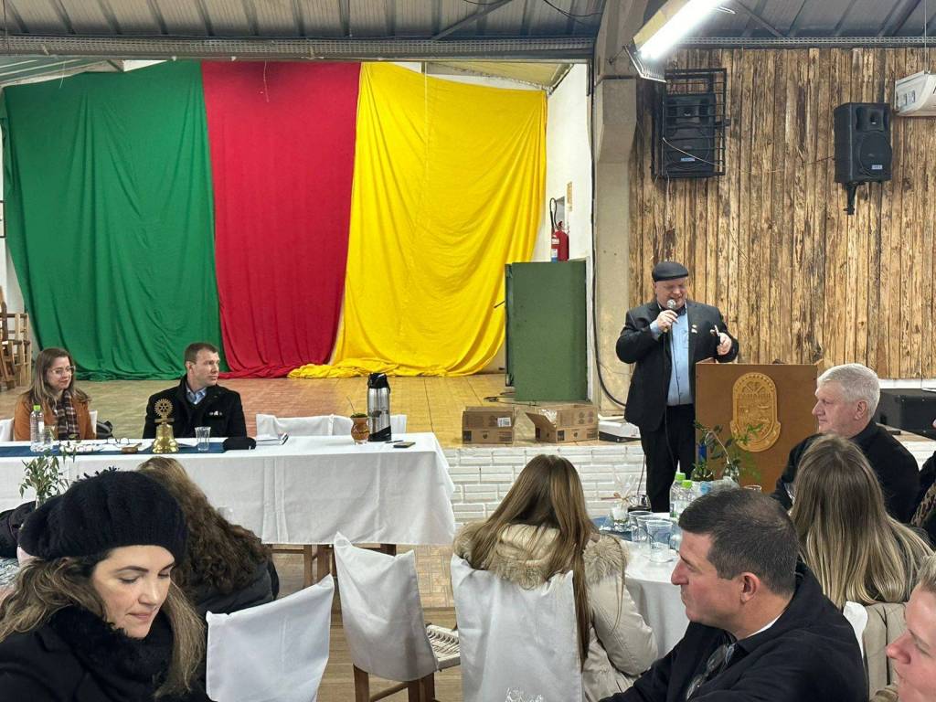 Em uma marcante reunião realizada no CTG Tropeiro Velho, o Rotary Club de Panambi prestou bonita homenagem aos Companheiros pela passagem do dia dos pais. Logo de inicio, o Companheiro Diretor de Protocolo Angelin Adams conclamou a todos os presentes para tomarem assento junto as mesas disponibilizadas no salão. Agradeceu a presença de todos os companheiros e familiares presentes, enfatizando o caráter especial desta reunião, em alusão ao Dia dos Pais. Na sequência o Presidente Sandro Girardi, com o bater do sino procedeu com a abertura da reunião, convocando a todos para que em pé saudassem simbolicamente, com forte salva de palmas ao pavilhão nacional de bandeiras. Após informou que o jantar estava servido e convidou aos presentes para se servirem. Mantendo-se um momento de integração e informalidade durante o jantar. Logo após desfrutar do saboroso jantar oferecido pela equipe do CTG, o companheiro Angelin retomou os trabalhos dando reinicio a reunião e a sequência a programação. Convocou a esposa do Presidente Sandro, a companheira Katiane Girardi, para transmitir uma mensagem com referência ao Dia dos Pais. Falou do desafio de ser Pai e Mãe, e pediu para que cada um fizesse uma introspecção e procurasse ver imagens que lembrava o seu Pai. Aquilo que primeiro vinha em mente e o que cada Pai representava na sua educação, no seu caráter, na sua formação, na sua fisionomia e personalidade e também nas cobranças. Da alegria, do trabalho, da dedicação e fez refletir sobre o não dar grandes coisas, mas de dar tudo o que tem aos seus filhos. Ao término da mensagem convocou aos filhos dos companheiros que estavam presentes, para fazerem a entrega de uma lembrança para cada um dos pais presentes. Ainda, ao final da reunião o Presidente Sandro destacou alguns assuntos de ordem interna, e encerrou a cerimonia agradecendo a presença de todos.