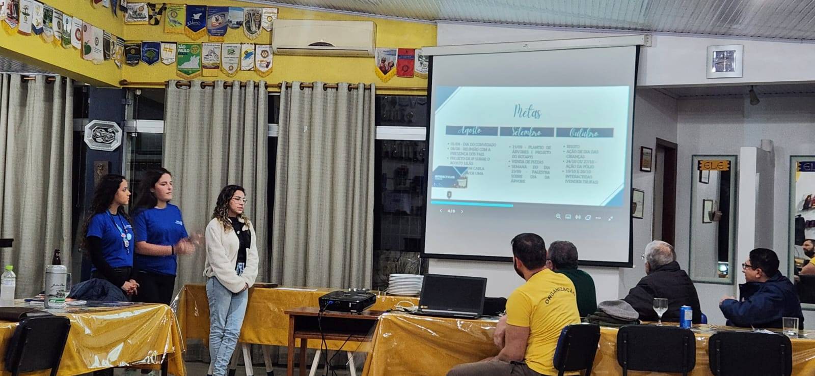 Na noite de 07 de agosto de 2024, integrantes do Interact Club, a Presidente Eduarda, vice-presidente Lavinia e secretária Isadora apresentando o plano de ação para a gestão 2024/2025