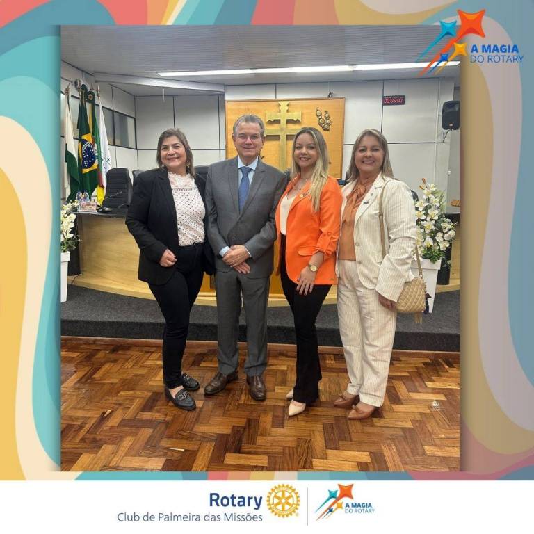 Na noite de hoje, dia 05 de agosto, em Solenidade na Câmara de Vereadores, as representantes da Família Rotaria estiveram presentes prestigiando a Cerimônia de entrega da Medalha Pé no Chão - Mérito Empreendedor ao Presidente da Fecomercio, Sr. Luiz Carlos Bohn. Na oportunidade fizeram a entrega de um mimo com o Lema “A Magia do Rotary” em agradecimento a parceria anual que a Fecomercio realiza com o Rotary Club de Palmeira das Missões, na compra de dezenas de Panetones do Bem, campanha esta desenvolvida pelo distrito em prol da Fundação Rotaria.
