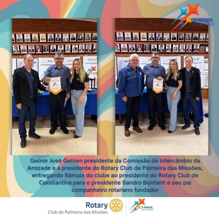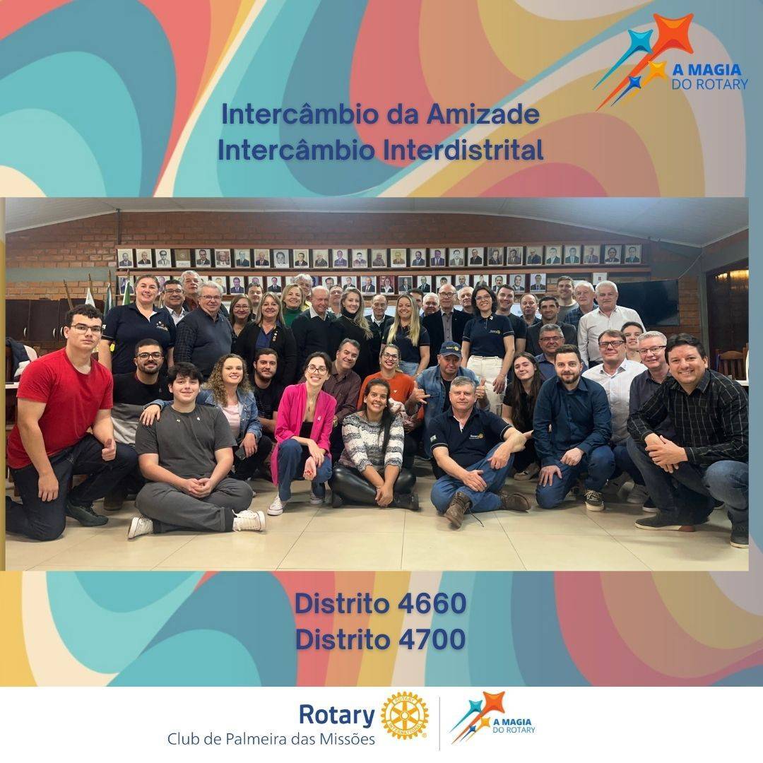 No dia 01 de agosto, ocorreu o 1º Intercâmbio da Amizade da gestão, onde o Rotary Club de Palmeira das Missões esteve recebendo os companheiros do Clube de Constantina do Distrito 4700, o qual é presidido pelo Presidente Sandro Bonfanti.