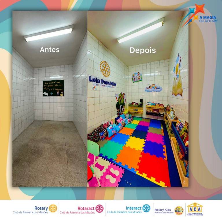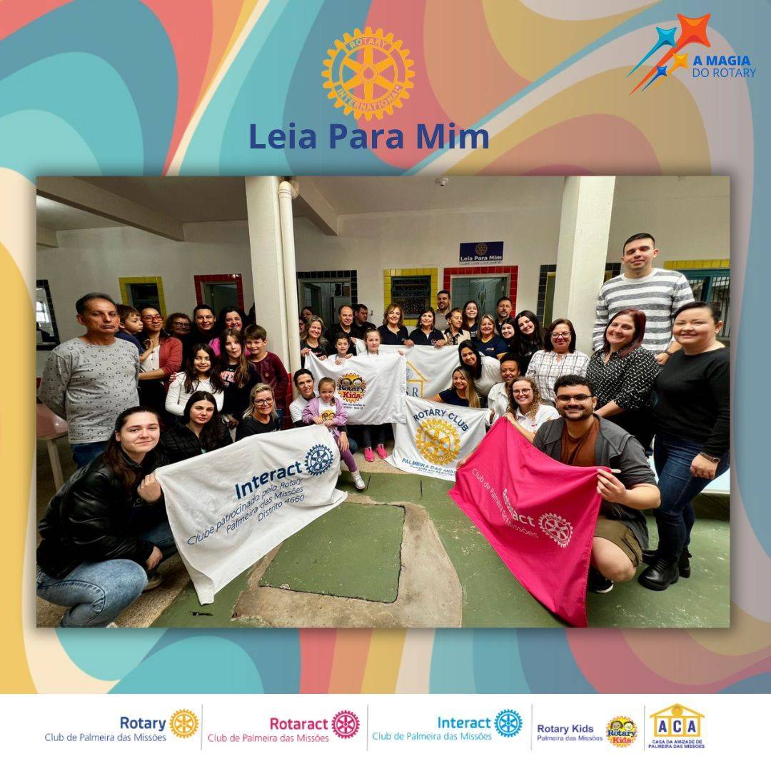 Neste sábado, dia 14 de setembro de acordo com o calendário rotário, setembro é o Mês da Educação Básica e Alfabetização, e em comemoração o Rotary Club de Palmeira das Missões juntamente com a Família Rotaria, Rotary Kids, Interact, Rotaract e Casa da Amizade organizaram uma sala de leitura na Escola Municipal de Educação Infantil Daltro Fioravante dos Passos, onde atenderá 70 crianças de 0 a 3 anos. O projeto é uma releitura do “Leia Para Mim” que foi criado no ano rotário 2008/2009 sob a Governadoria do Governador Mário César Portinho Vianna, onde foi distribuído em nosso hospital de caridade e em creches do município um kit onde continha uma camiseta do projeto, uma cartilha de como introduzir a leitura desde o ventre da mãe e um livrinho, e hoje sua esposa sendo a atual Governadora do Distrito 4660 Geisa Vianna, quisemos trazer este projeto em um novo formato.