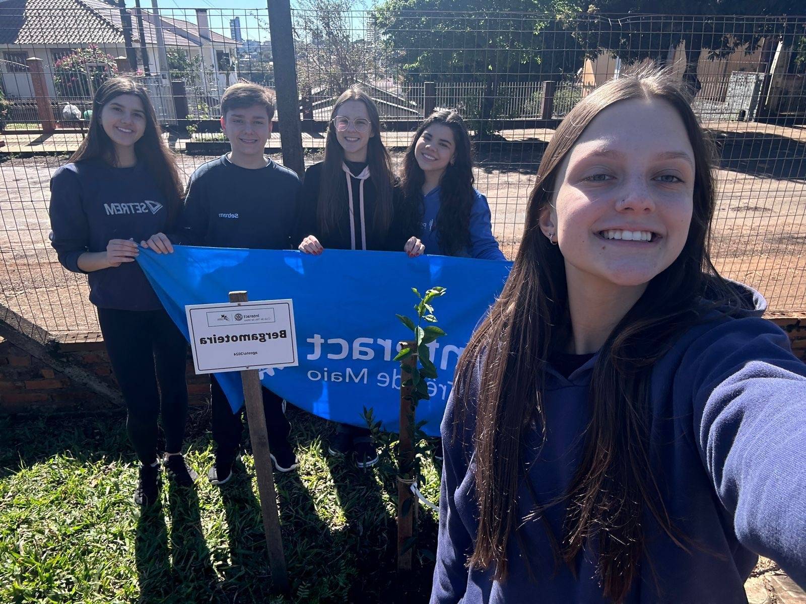 16 mudas de laranjeiras e bergamoteiras em conjunto com as escolas Castelo Branco, Setrem e Pacelli! Na última, contamos com a ajuda e participação dos alunos do 5° ano.