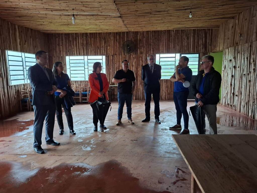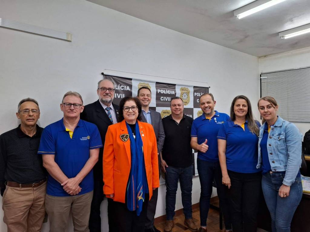 Durante a tarde foi realizada uma visita ao prédio da Delegacia de Polícia e ao salão anexo ao pátio da DP, local este que será revitalizado, onde fomos recepcionados pelo Delegado Marcelo Mendes Lech, o comissário e companheiro Fabricio Bervian com sua equipe.