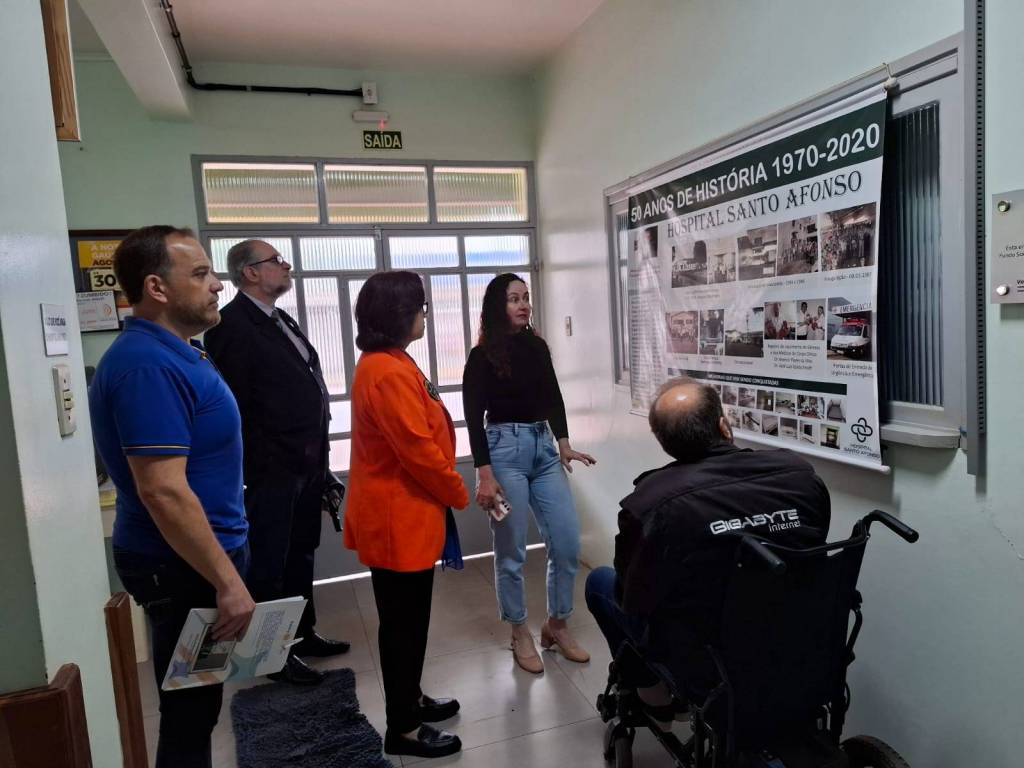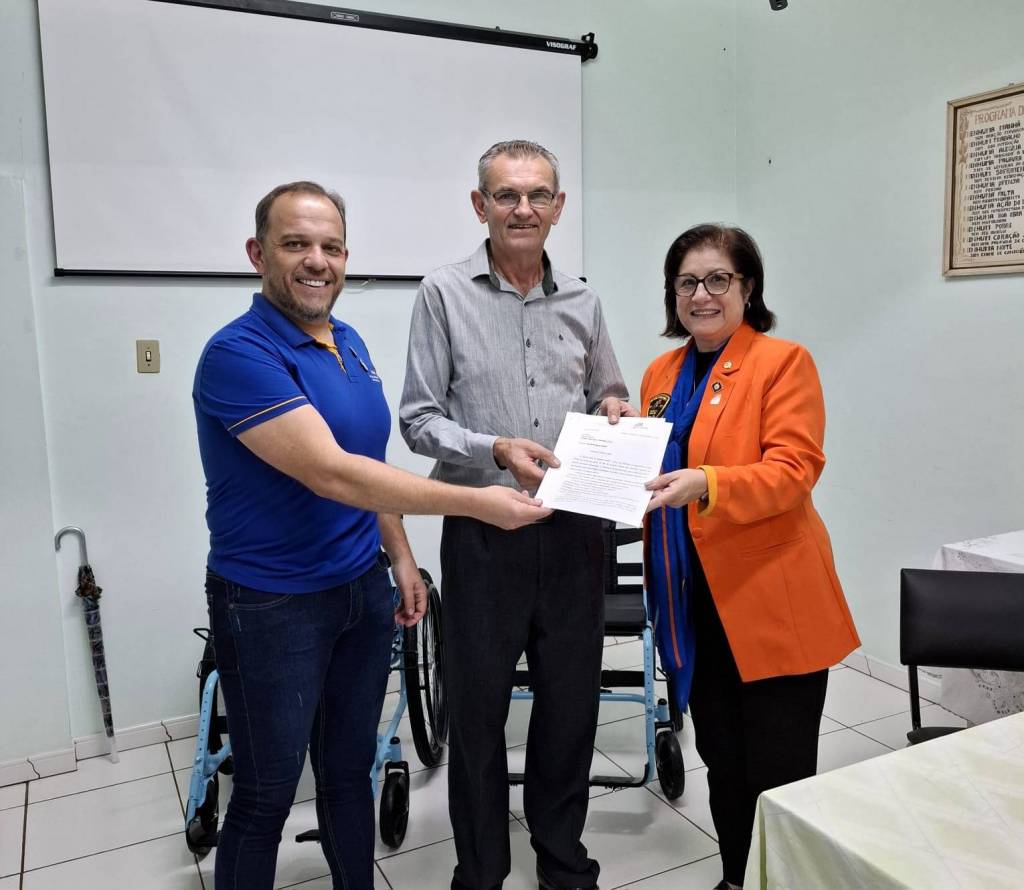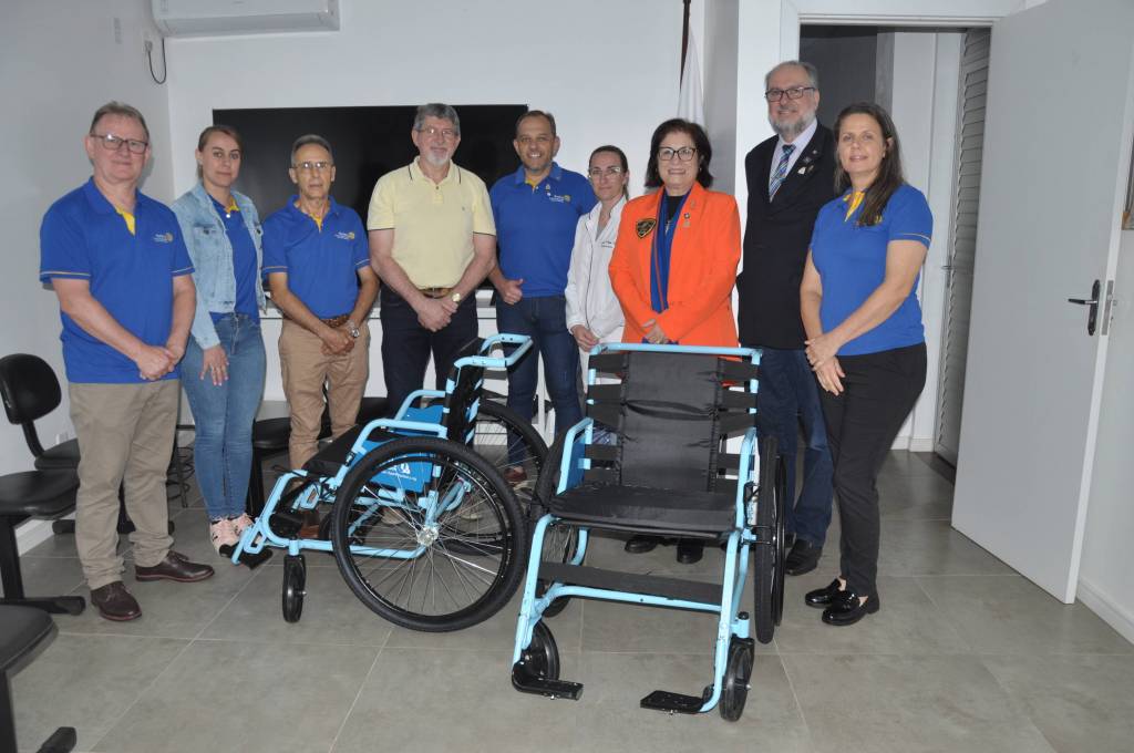 Após, aconteceu a entrega de duas cadeiras de rodas a Unidade Básica de Saúde com a presença do Prefeito Municipal e da Enfermeira Luciane Bastian e da mesma forma foi entregue duas cadeiras de rodas ao Hospital Santo Afonso, na presença da Diretora do Hospital Rosmaite Immich. Estas cadeiras de rodas foram doadas através do Programa Mobilidade para Todos, o qual o nosso Club foi contemplado com 10 unidades.