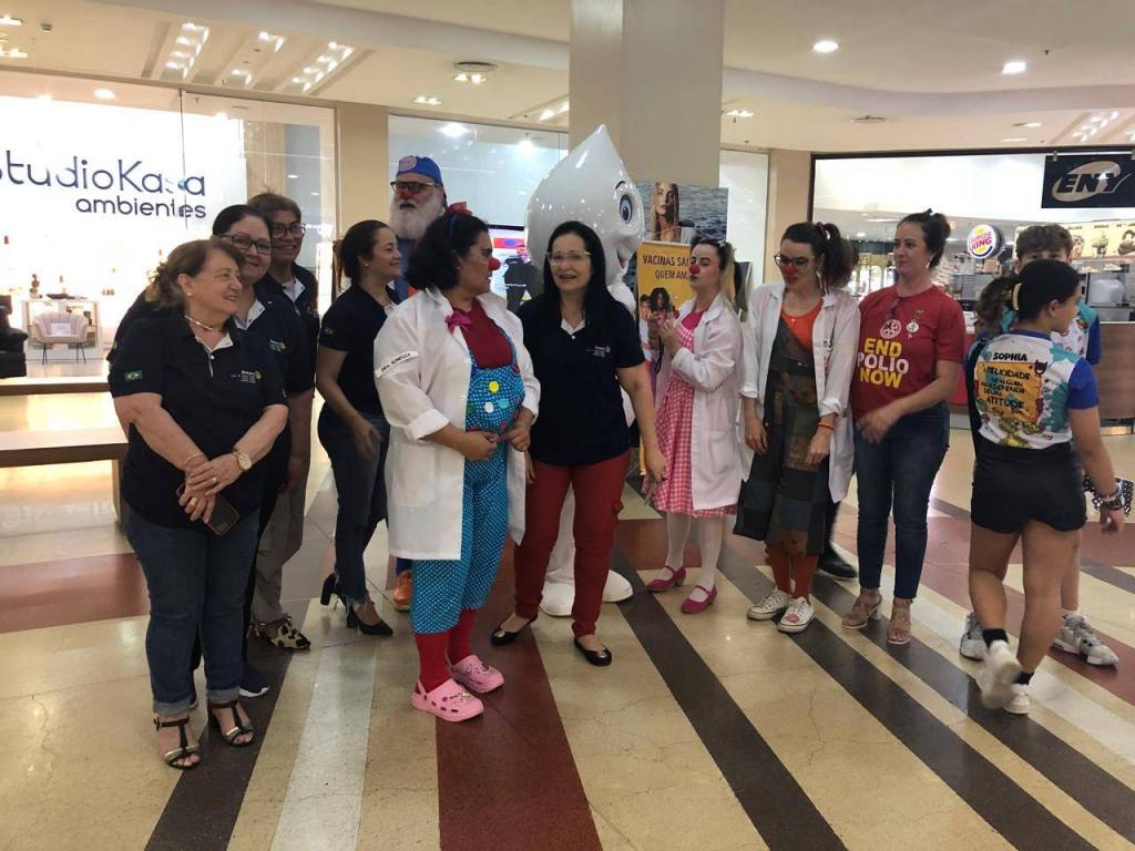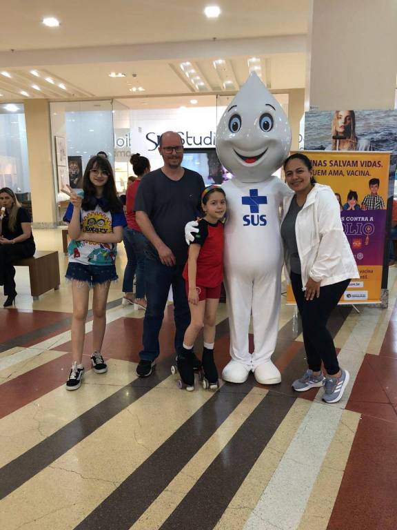 Na data de 23.10.2024, realizou-se a ação "todos juntos contra Polio" no hall do Royal Pazza Shopping com inicio as 17:00 horas com a presenca do Zé Gotinha e do Esquadrão da Alegria, atravez de distribuição de panfletos, projeção de videos e brindes para as crianças. Evento de informação e consientização sobre a importancia das vacinas, fim de tarde de muita alegria por um motivo tão nobre e importante a vacinação das criancas para juntos irradicarmos a Polio.