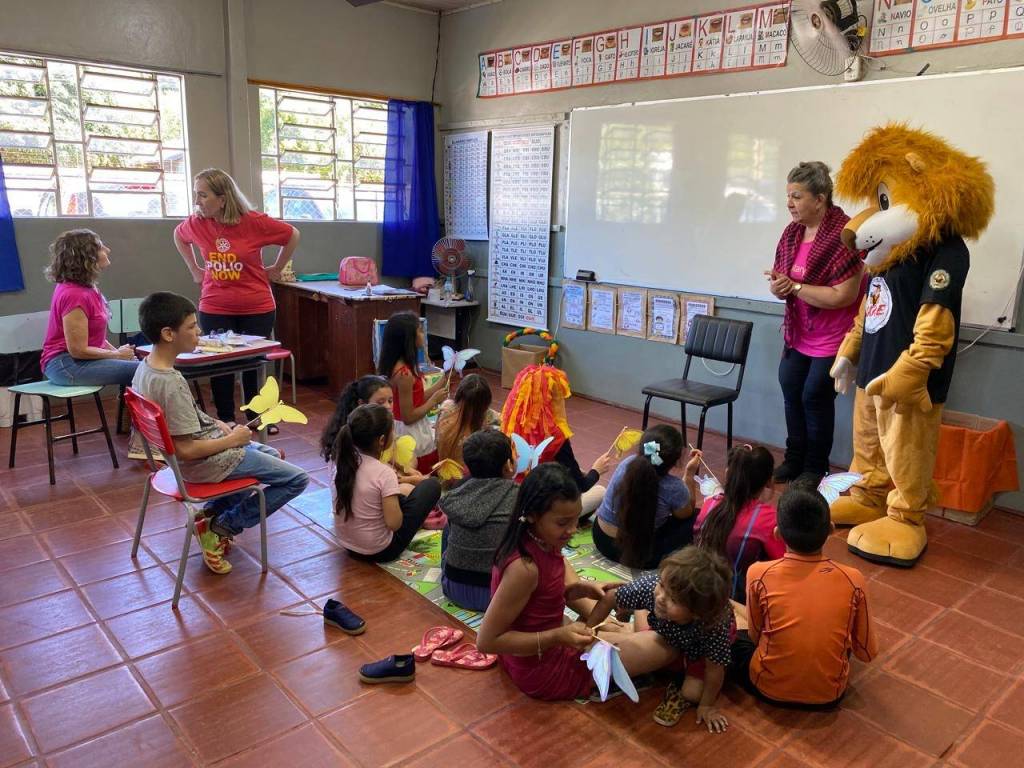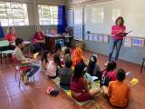 📍A tarde foi voltada para crianças do 1° ao 5° ano do ensino fundamental e responsáveis, onde puderam participar de oficinas de contação de histórias, abordando temas como vacinação contra a pólio, violência, diversidade e a dengue.