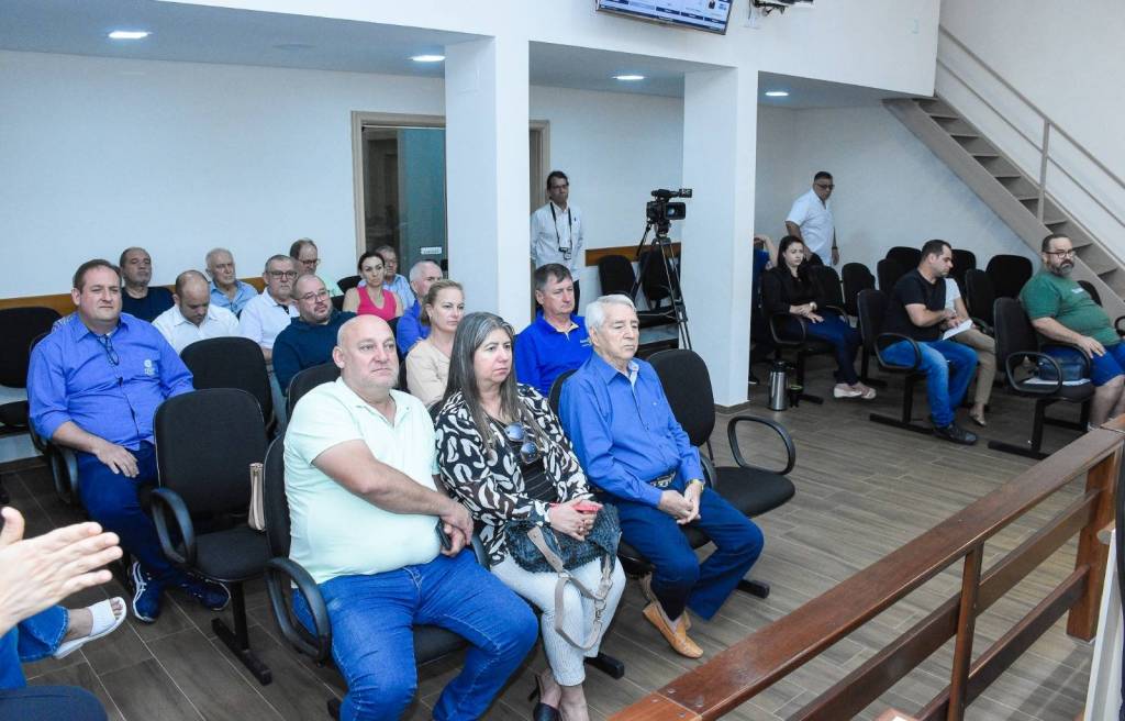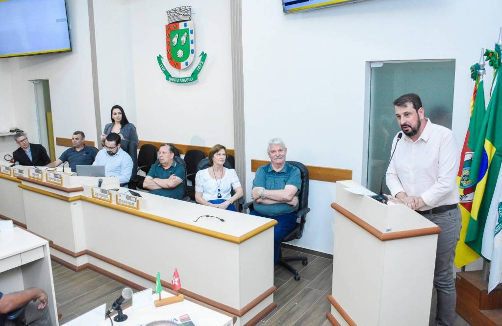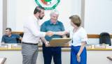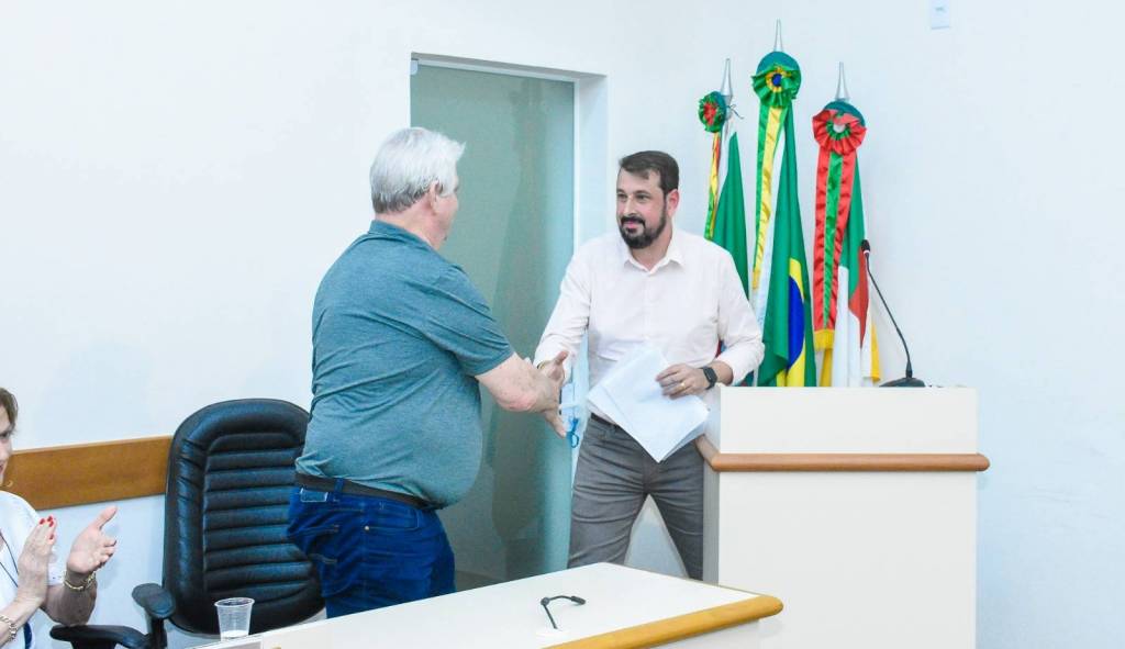 A mesa de honra foi composta pelo Presidente do Legislativo, Felippe Terra Grass (PDT), vice -presidente, Vando Ribeiro (PSDB), secretário, André Pedroso (PP), representando o Poder Executivo, Secretário de GOverno e Relações Institucionais, Jânio Fernando Bones,e o Homenageado, Antônio Frederico Chitolina acompanhado de sua esposa, Alice Munchen.
