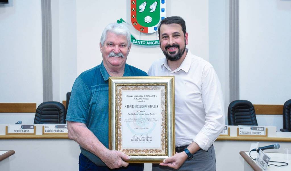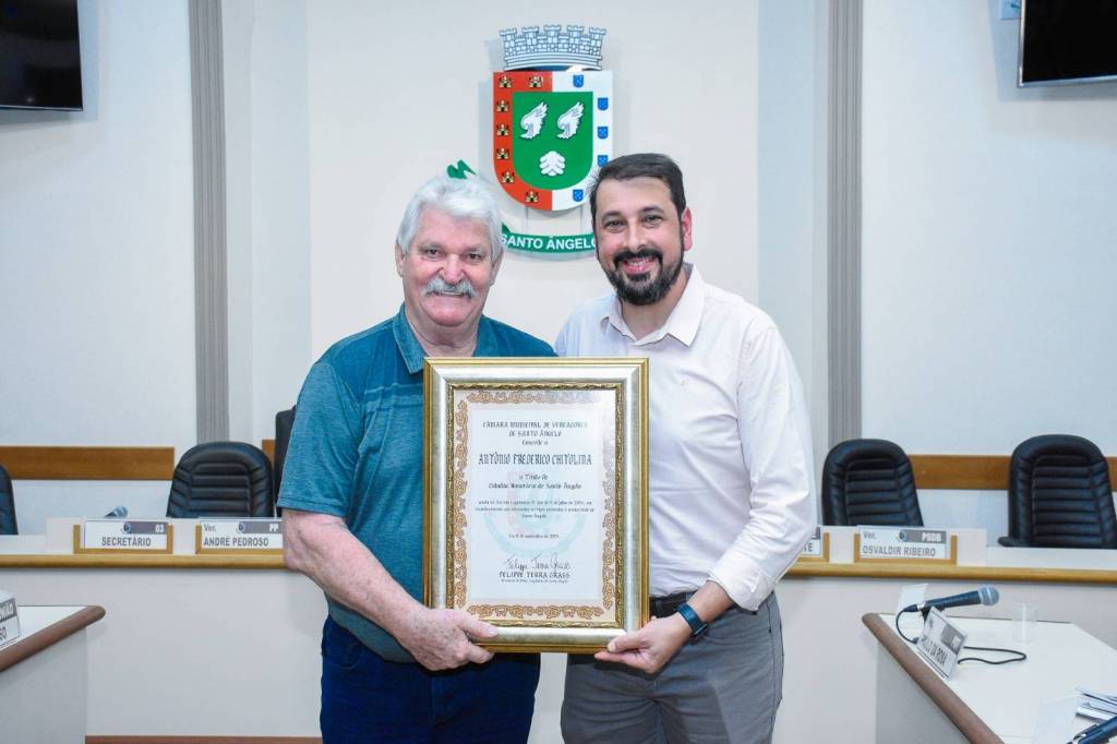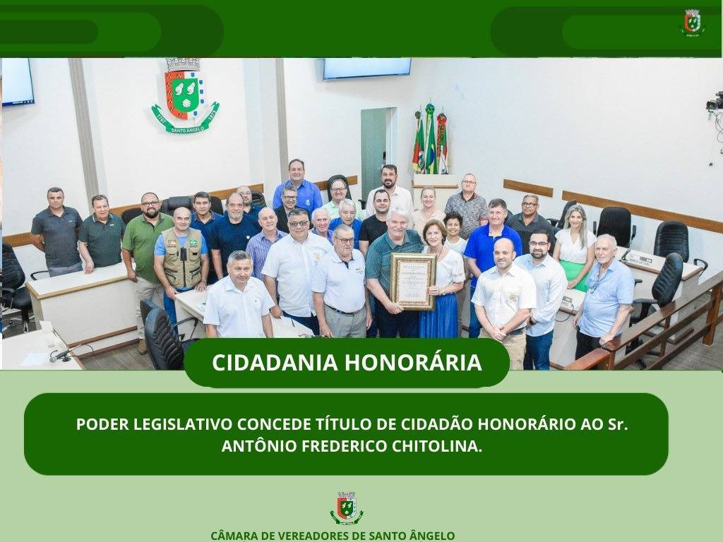 Na noite de segunda-feira, 11 de novembro, a Câmara Municipal de Santo Ângelo/RS prestou uma homenagem especial ao professor, concedendo-lhe o título de Cidadão Honorário de Santo Ângelo. A iniciativa foi proposta pelo vereador Rodrigo Flores e aprovada por unanimidade entre os vereadores, em reconhecimento aos relevantes serviços prestados por Chitolina ao município, tanto como educador quanto como Rotariano.