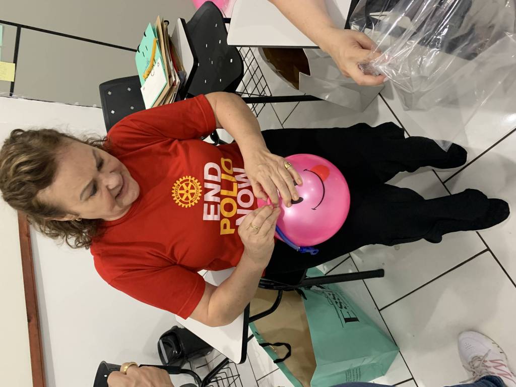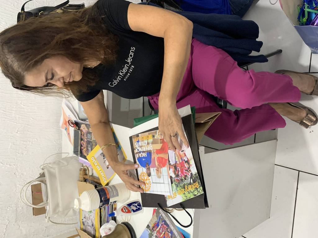 Customizamos as embalagens a partir de sacolas de papel e revistas do Rotary. Usamos nossa criatividade. Ficou muito lindo e prazeroso para quem estava presente.
