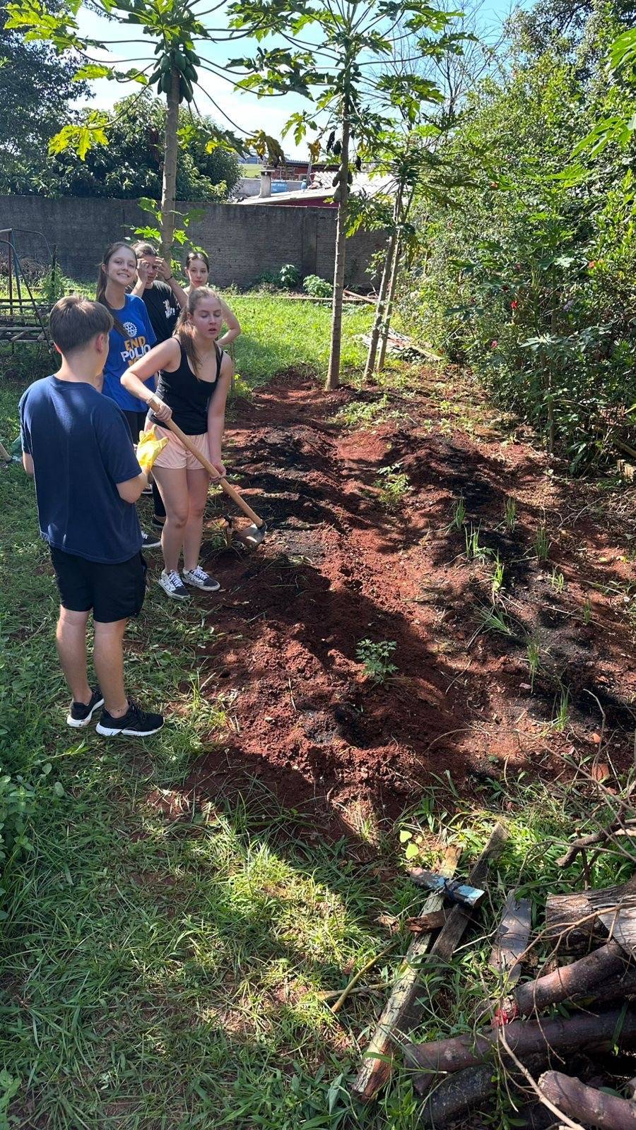 4ª Semana: No dia 20 de dezembro, como quarto projeto, realizamos a revitalização do jardim do Bairro Santa Maria, junto com a ONG Fazer o Bem, Faz Bem, com o plantio de árvores e flores.🌸