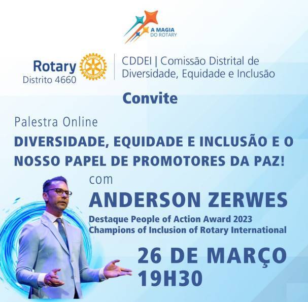 • A Comissão Distrital de Diversidade, Equidade e Inclusão do Distrito 4660 convida