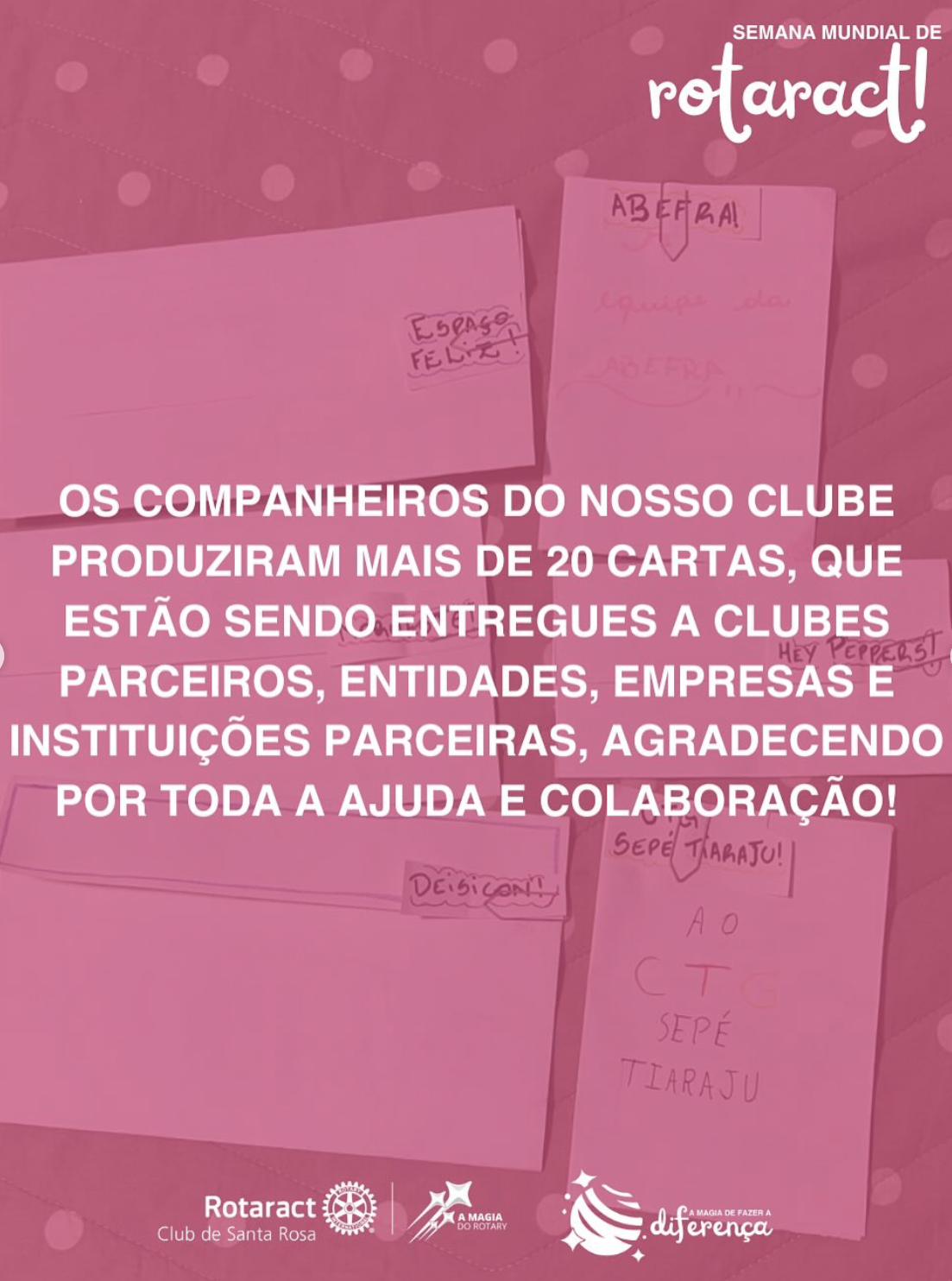 Com intuito de agradecer e incentivar novas e antigas parcerias, os companheiros de nosso clube foram convidados a escrever cartas agradecendo a instituições, empresas e clubes de serviço!