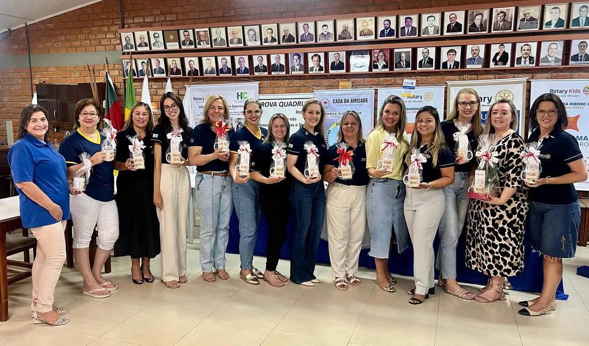 A presidente Schawana Zandoná Gehlen abriu a noite com uma mensagem emocionada e motivadora, destacando a força, dedicação e sensibilidade das mulheres que atuam no clube e na comunidade. Como gesto de carinho, todas as mulheres rotarianas foram presenteadas com mimos, em nome de todos os companheiros do clube.