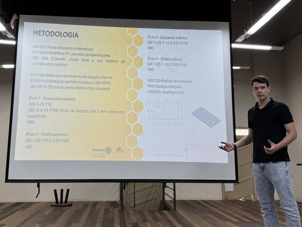 Na tarde de tarde, os associados João Gabriel Martel, Laura Bitencourt & Isadora Cózer realizaram suas apresentações, com seus respectivos temas: Usinagem, Direito & Arquitetura e Urbanismo.