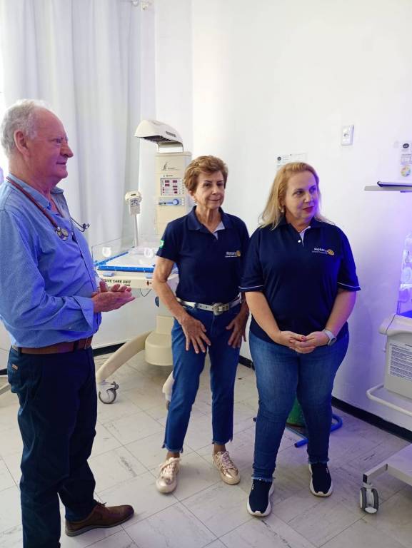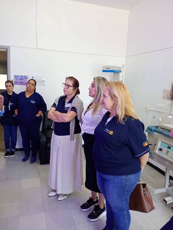 Nas fotos temos a participação da Gestora do Hospital de Caridade Brasilina Terra - Fernanda Crescente e dos médicos Adonir Campara e Felipe Orso, enfermeira Fernanda, colaboradora Denise, nutricionista Marieli e as rotarianas Luciane, Geisa e Evany.