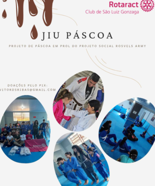 Na última quarta-feira, Weslen e Vitor representaram o Rotaract Club de São Luiz Gonzaga em uma ação solidária em prol do projeto social Rosvels Army, que atende dezenas de crianças e adolescentes por meio do esporte e da prática do jiu-jitsu.