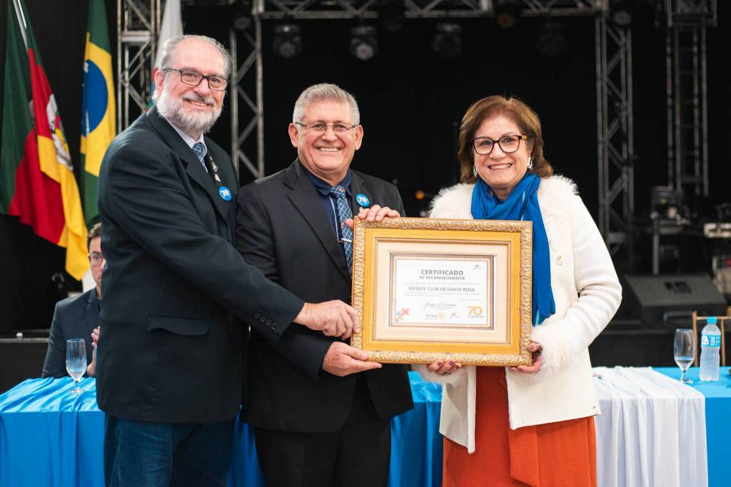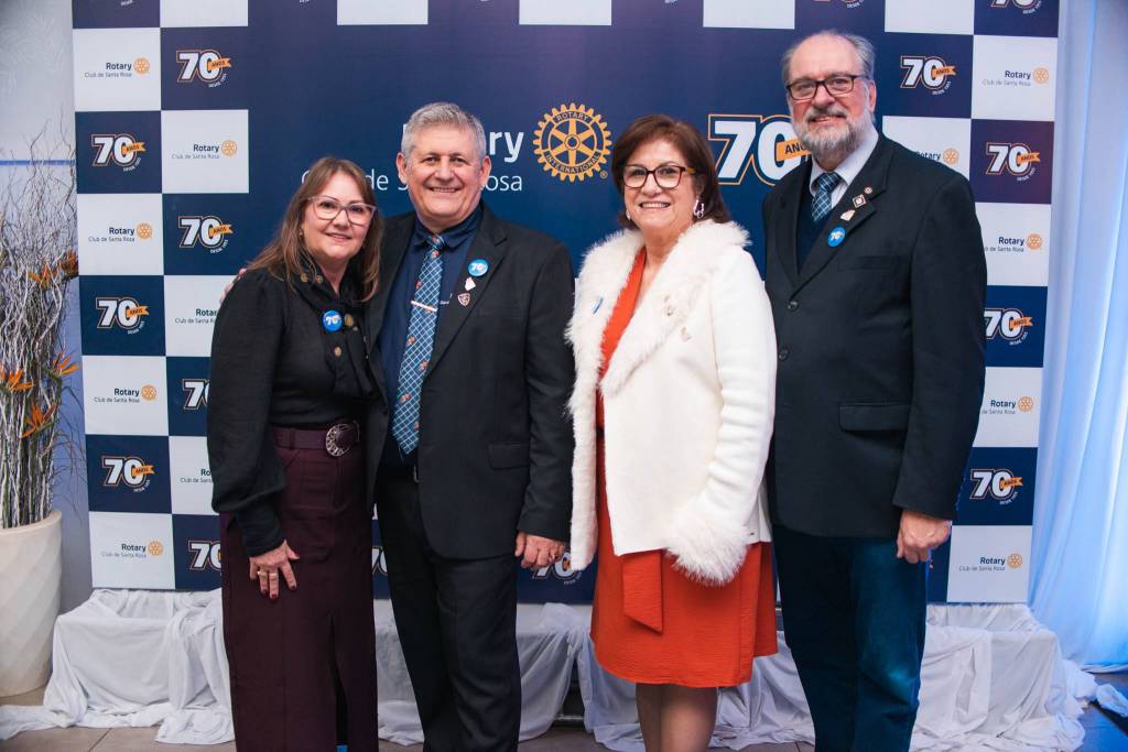 O Rotary Club de Santa Rosa comemorou, no último sábado (14), seus 70 anos de fundação com uma noite especial realizada no Espaço Eventos Ledi Produções. A celebração reuniu rotarianos, autoridades, imprensa e convidados, em um momento de reconhecimento à longa trajetória de dedicação ao voluntariado, ao companheirismo e ao desenvolvimento comunitário.