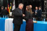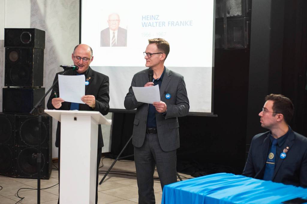 A cerimônia contou com a presença da governadora do Distrito 4660, Geisa Rodrigues Vianna, do prefeito Anderson Mantei e do deputado federal Osmar Terra, que destacaram a relevância do clube na história de Santa Rosa. O presidente do Rotary Club de Santa Rosa, João Luís da Rosa, conduziu o evento, reforçando o compromisso com os ideais rotários que continuam guiando o trabalho do clube.