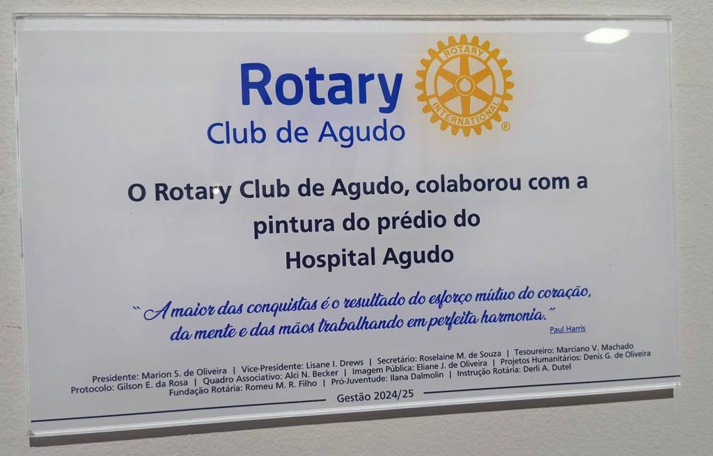 Fazer o bem é uma escolha diária, e o Rotary Club de Agudo reafirma esse compromisso ao contribuir com a doação de tintas para a pintura de parte do Hospital de Agudo.