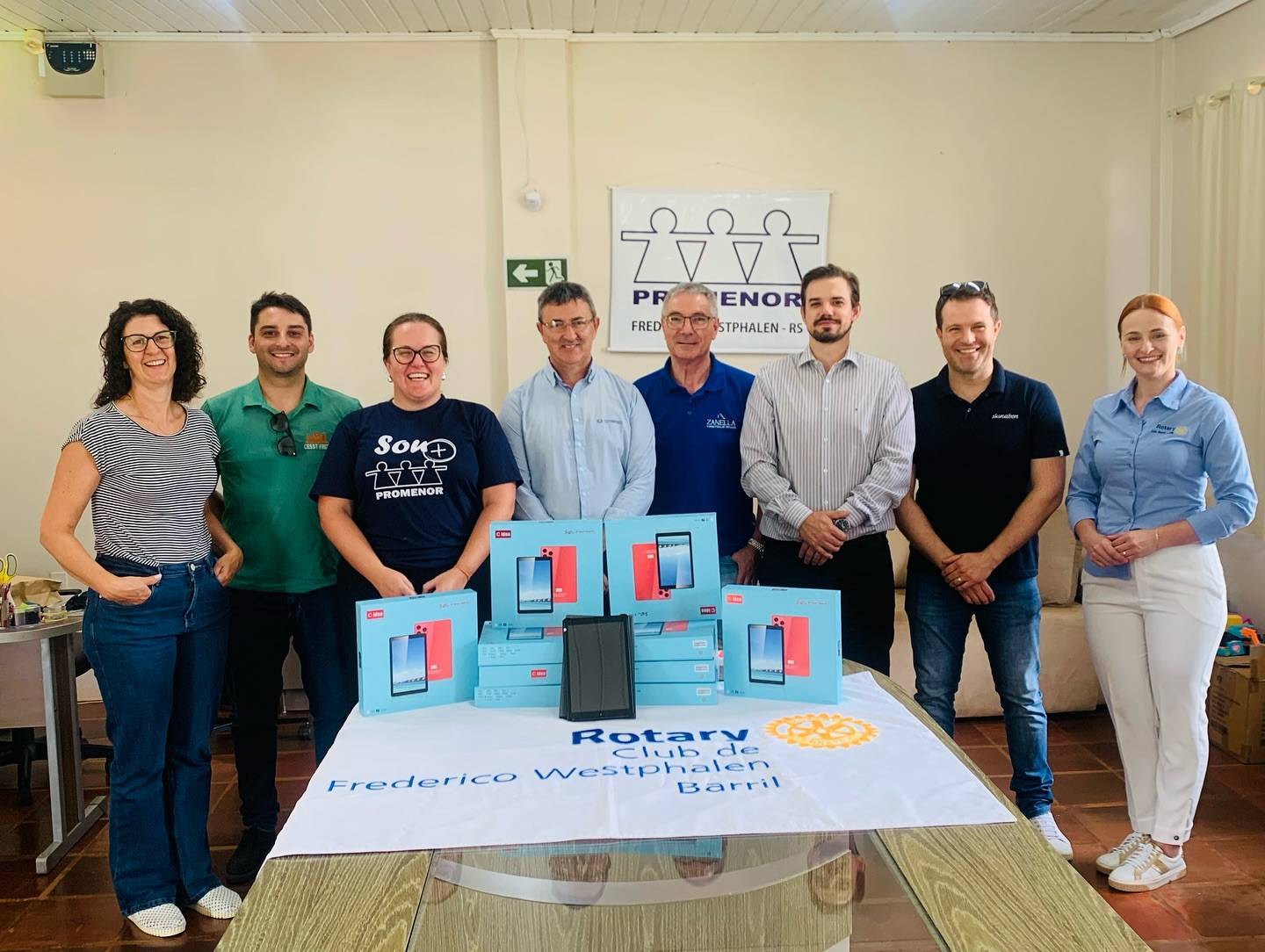 O Rotary Clube de Frederico Westphalen Barril, alinhado às áreas de enfoque do presente ano rotário, entregou a Associação Frederiquense de Promoção do Menor (Promenor), 10 microcomputadores do tipo "tablet", para equipar a sala de informática e promover ações voltadas ao fortalecimento da educação e da inclusão digital para crianças e adolescentes em situação de vulnerabilidade.