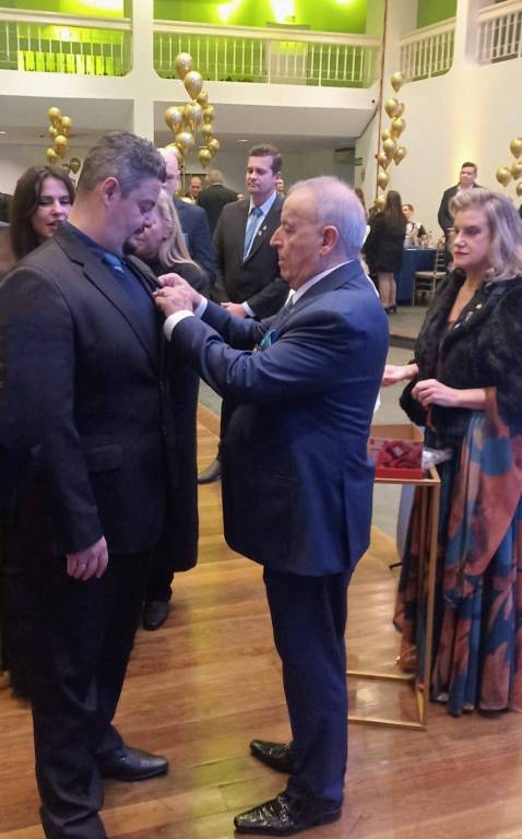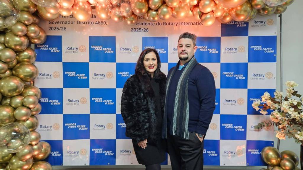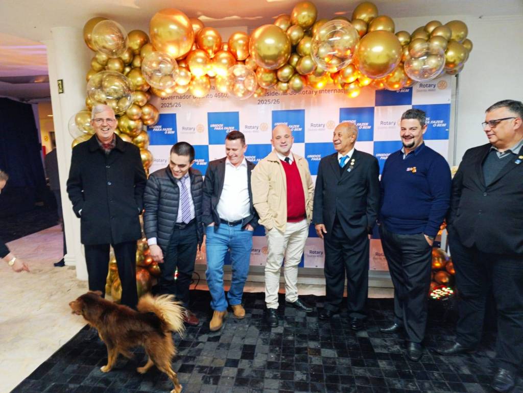 Durante a cerimônia, o governador deu posse aos presidentes dos clubes do distrito, entre eles nosso companheiro Alamir Fischer, que assumiu a presidência do nosso clube ao lado de sua esposa, Jessica, para a gestão 2025/2026.