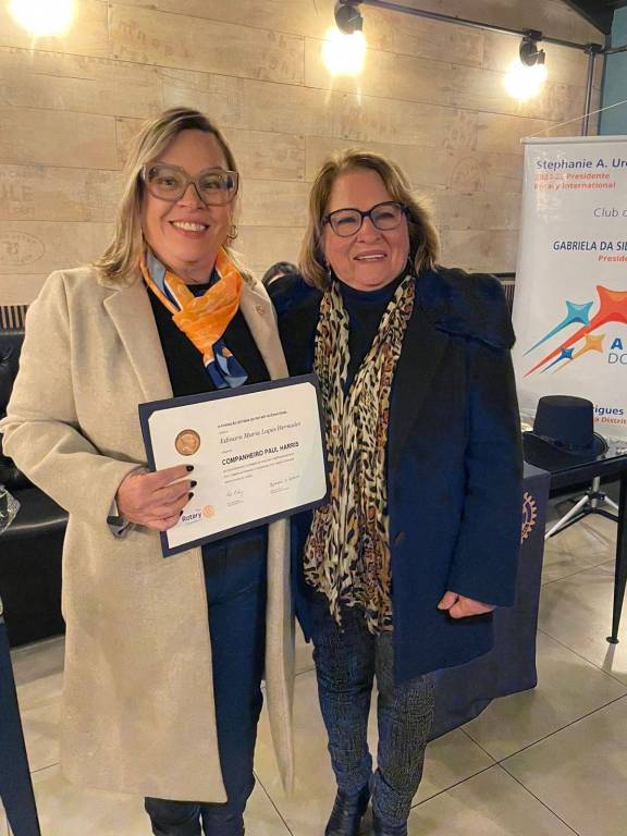 As companheiras Edinada Hernandez e Simone Martins receberam o título Paul Haris em reconhecimento aos serviços prestados a frente da presidência do clube.