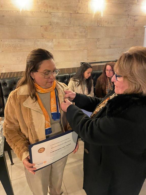 A prefeita Dra Paula Facco Rubin Librelotto recebeu o título de sócia honorária do RC de Cruz Alta Ana Terra, pela sua significativa contribuição à comunidade e apoio aos ideais do Rotary.