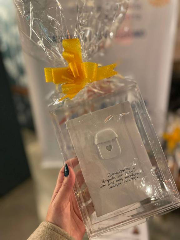 A companheira Sandra Rubin - presidente da Gestão 2025/26, recebeu um mimo feito pela presidente Gabriela para iluminar seu caminho.