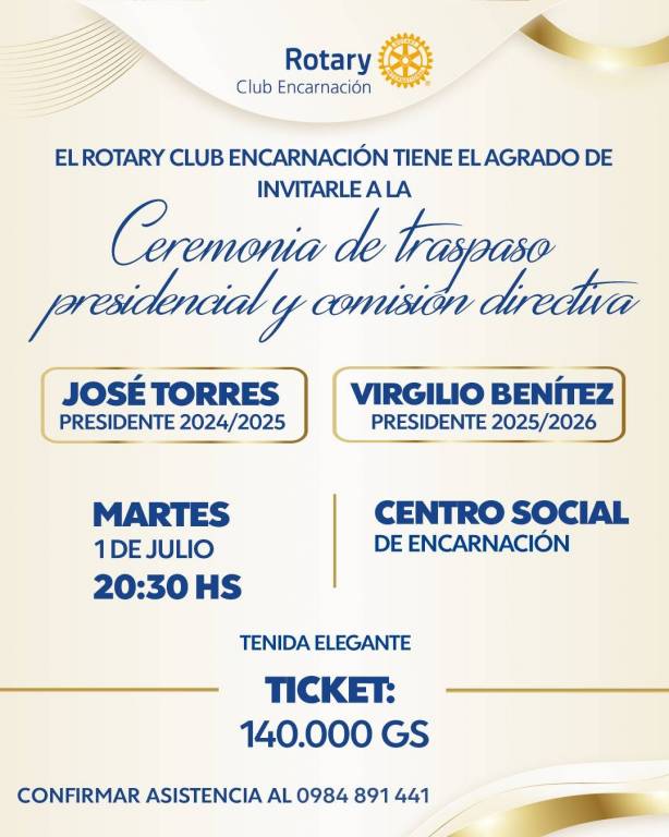 Na noite desta terça-feira, 1º de julho, o Rotary Club de Santo Ângelo Norte esteve presente na Cerimônia de Posse do Presidente Virgilio Benítez e do novo Conselho Diretor do Rotary Club de Encarnación – Paraguai 🇵🇾.