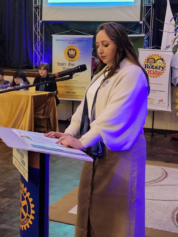 Na noite da última sexta-feira, 4, no Clube Centenário de Agudo, o Rotary Clube de Agudo viveu um momento especial com a solenidade de posse da nossa nova presidente, Roselaine Machado de Souza (Rose), e de todo o Conselho Diretor para o Ano Rotário 2025-26.