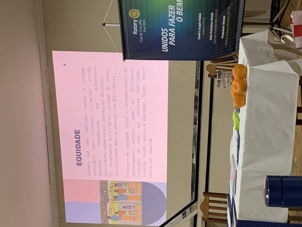 A instrução rotária ficou a cargo da presidente da comissão DEI (Diversidade, Equidade e Inclusão), Márcia Lamaison, que explicou os conceitos e suas implicações de modo muito claro e objetivo.