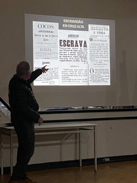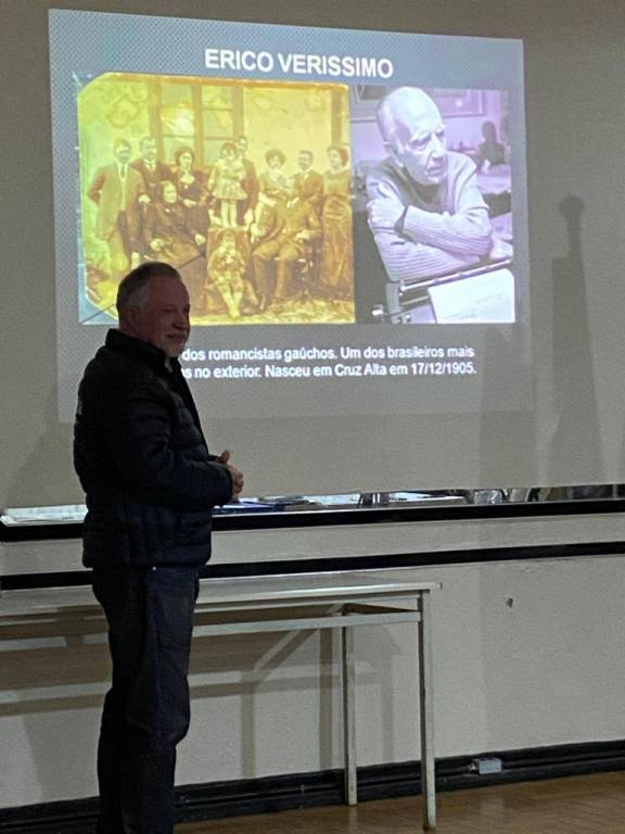 Entre fatos e curiosidades Rossano relatou como Cruz Alta foi fundada, a importância dos tropeiros, combatentes de guerra até chegar na vida e obras de Érico Verissimo.