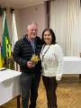 Em agradecimento a relevante palestra a presidente Sandra entregou um mimo ao Rossano.