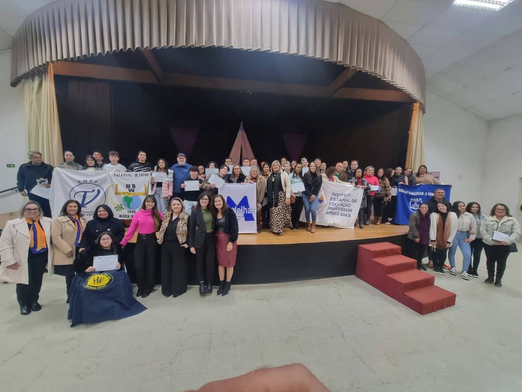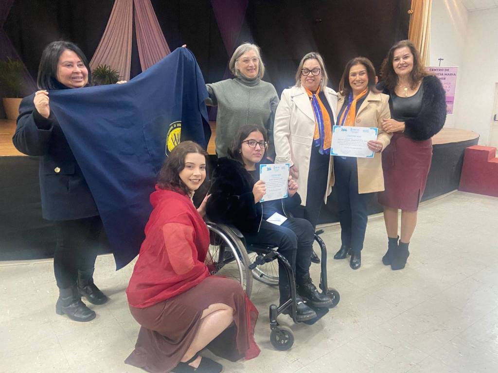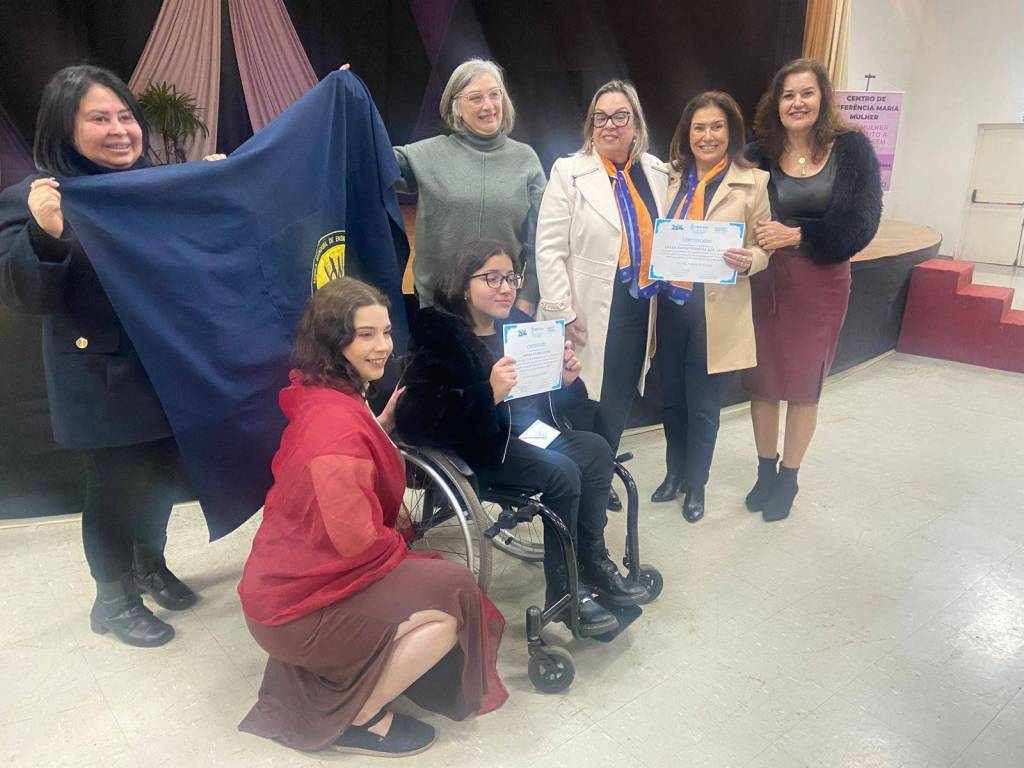 Na quinta-feira, 14 de agosto, na Casa de Cultura Justino Martins, a presidente Sandra Rubin e a companheira Edinara Hernandez representaram o RC Ana Terra na premiação do 6º Concurso de Redação, destinado aos alunos municipais cujo tema era Violência contra Mulher.