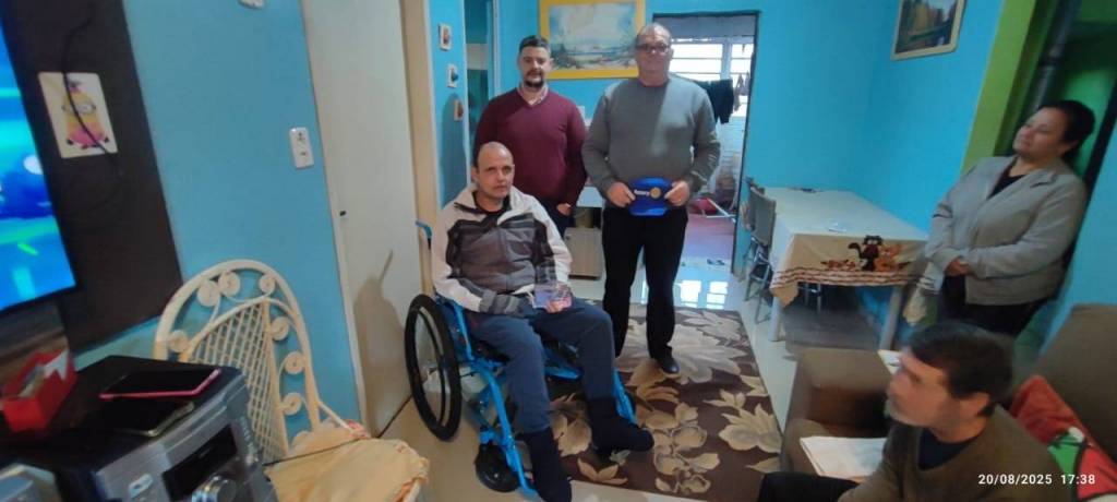 O Rotary Club de Santo Ângelo Norte, através do presidente Alamir Reis Fischer, acompanhado dos companheiros Edelni Franke e José Mauro, realizou a entrega de uma cadeira de rodas do projeto Mobilidade para Todos ao beneficiário Rodrigo Teixeira Scremin.