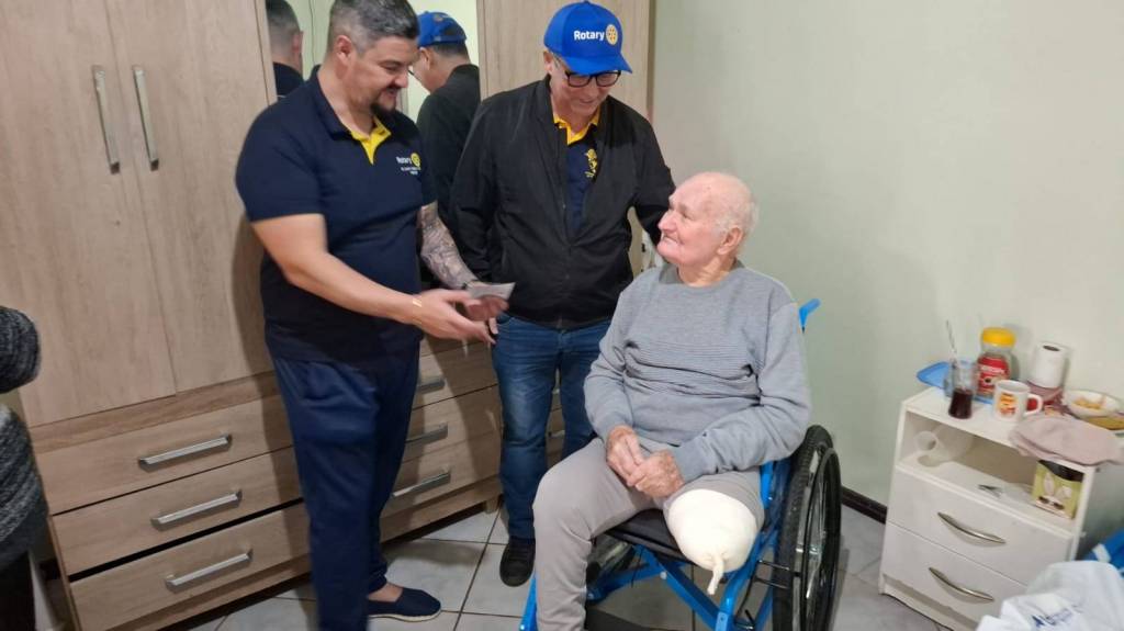 O beneficiado desta vez foi o Sr. Silvestre Dogonski, de 84 anos, que enfrenta os desafios da diabetes. Com a cadeira de rodas, ele poderá sair da cama com mais facilidade e aproveitar momentos preciosos ao lado de sua filha e de seu neto. Sua esposa, Reni Maria Dogonski, expressou profunda gratidão ao Rotary e à Free Wheelchair Mission por essa transformação em sua vida. 🙌♿