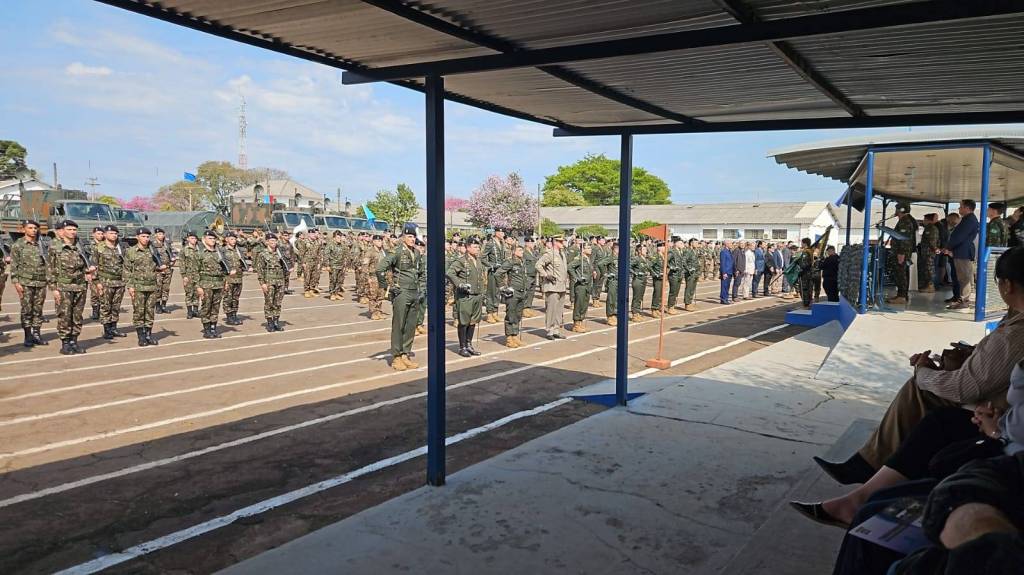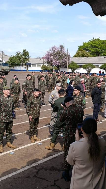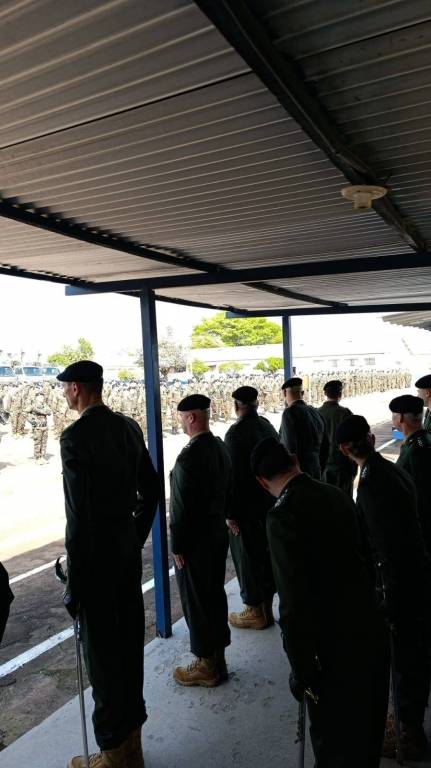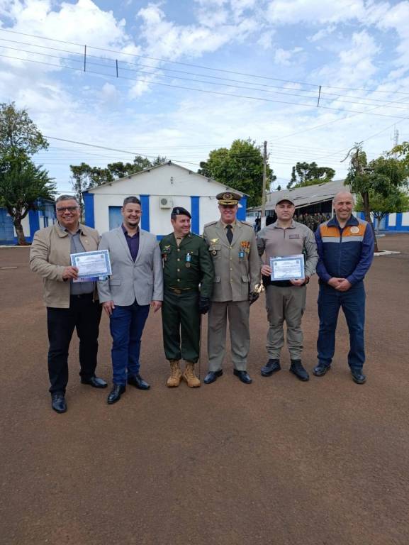 O presidente Alamir Reis Fischer, past-presidente Claudio Cunha, juntamente com o companheiros Luiz Aguir (representando a Brigada Militar), Marcio Ribas e Jocelito Zoborowski, participaram de um momento especial na sede do 1º Batalhão de Comunicações de Santo Ângelo.