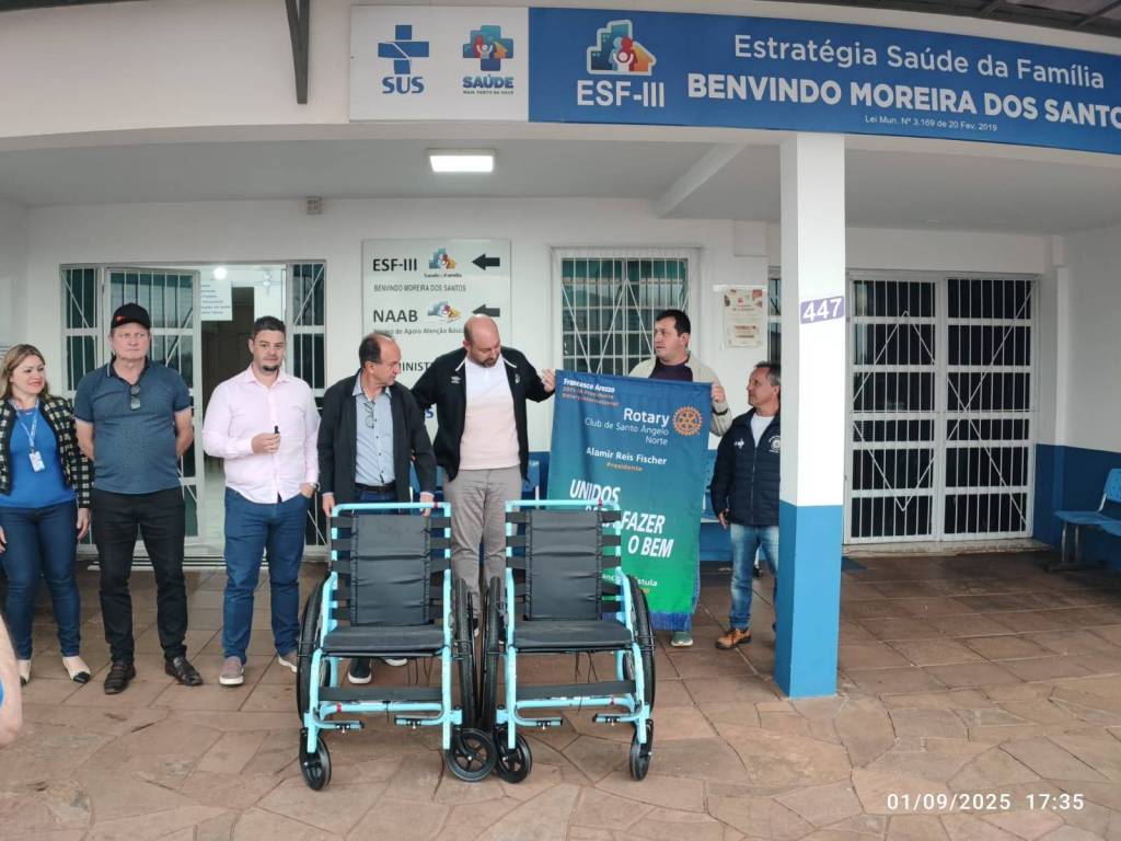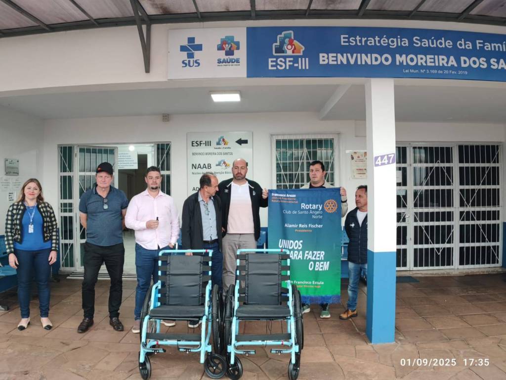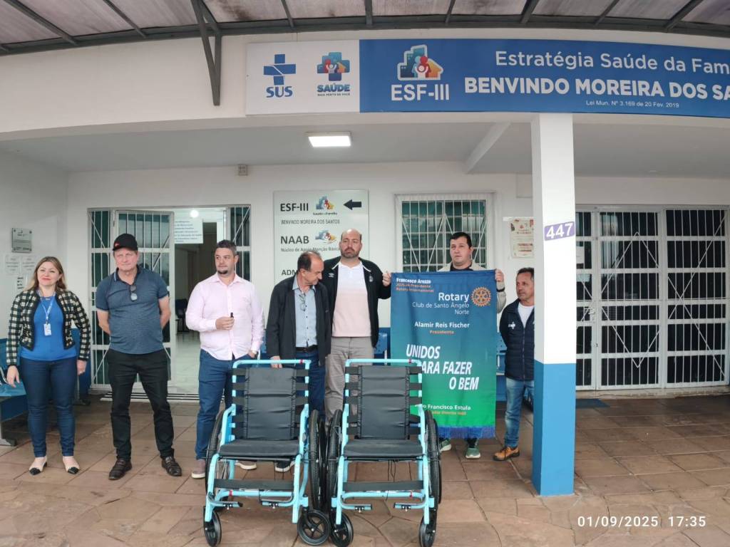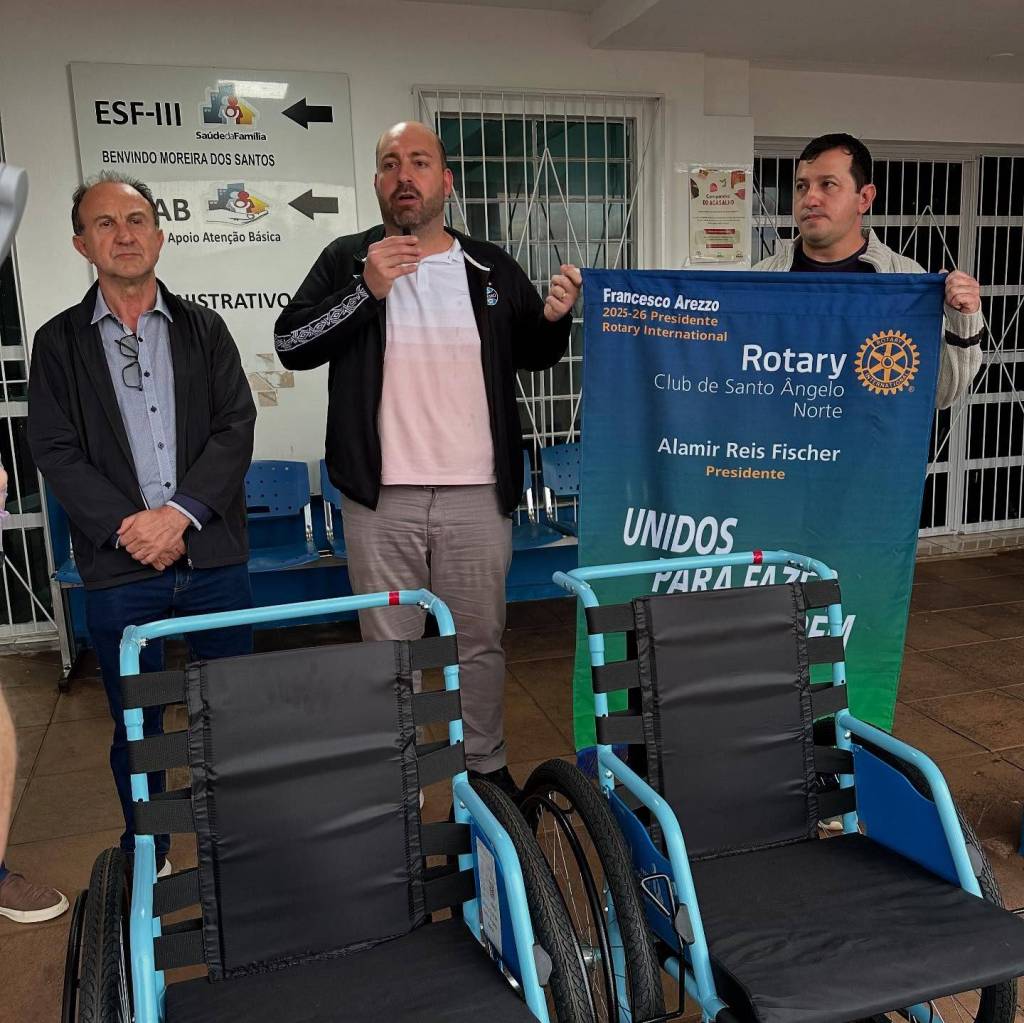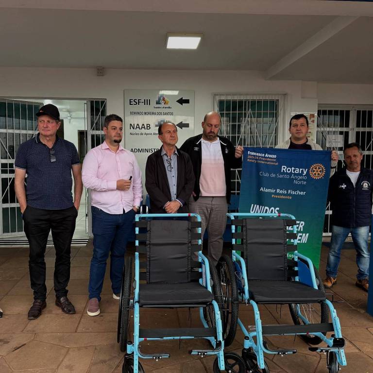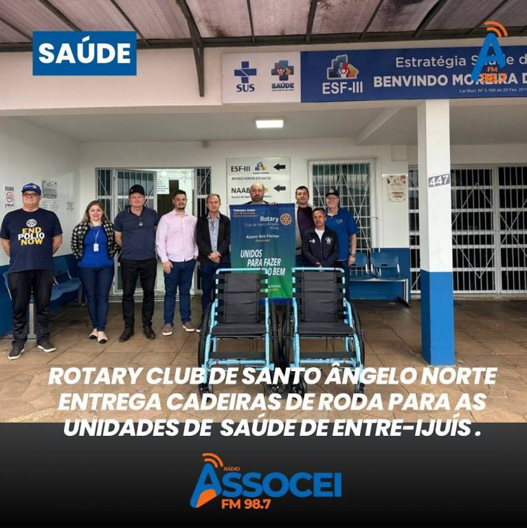 ➡️ O Rotary Club de Santo Ângelo Norte contemplou Saúde da cidade de Entre-Ijuís com 4 cadeiras de rodas através do Projeto Mobilidade para Todos, em parceria com a Free Wheelchair Mission.