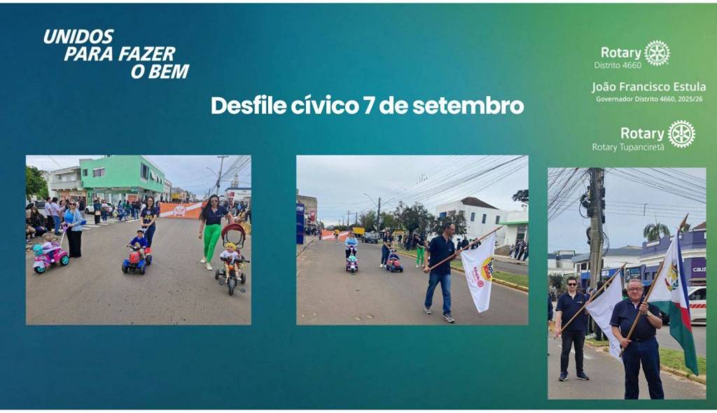 Em Tupanciretã, o Rotary Club marca presença no desfile cívico de 7 de setembro.