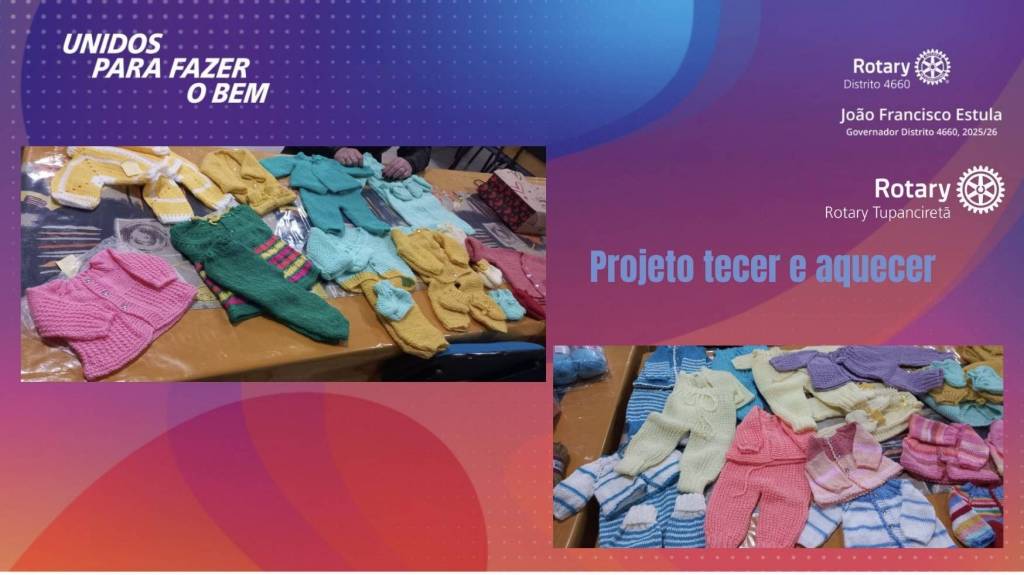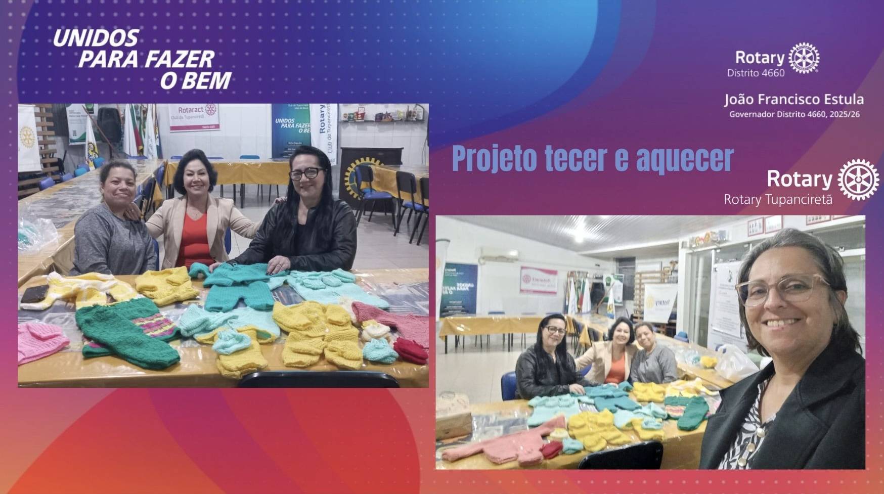 Com o objetivo de confeccionar conjuntos de lã para doação aos recém-nascidos, tendo a participação de senhoras da sociedade que disponibilizam mão-de-obra gratuita, integram-se e partilham experiências e amizades, contando com recursos de doações da comunidade e Rotary Club de Tupanciretã.