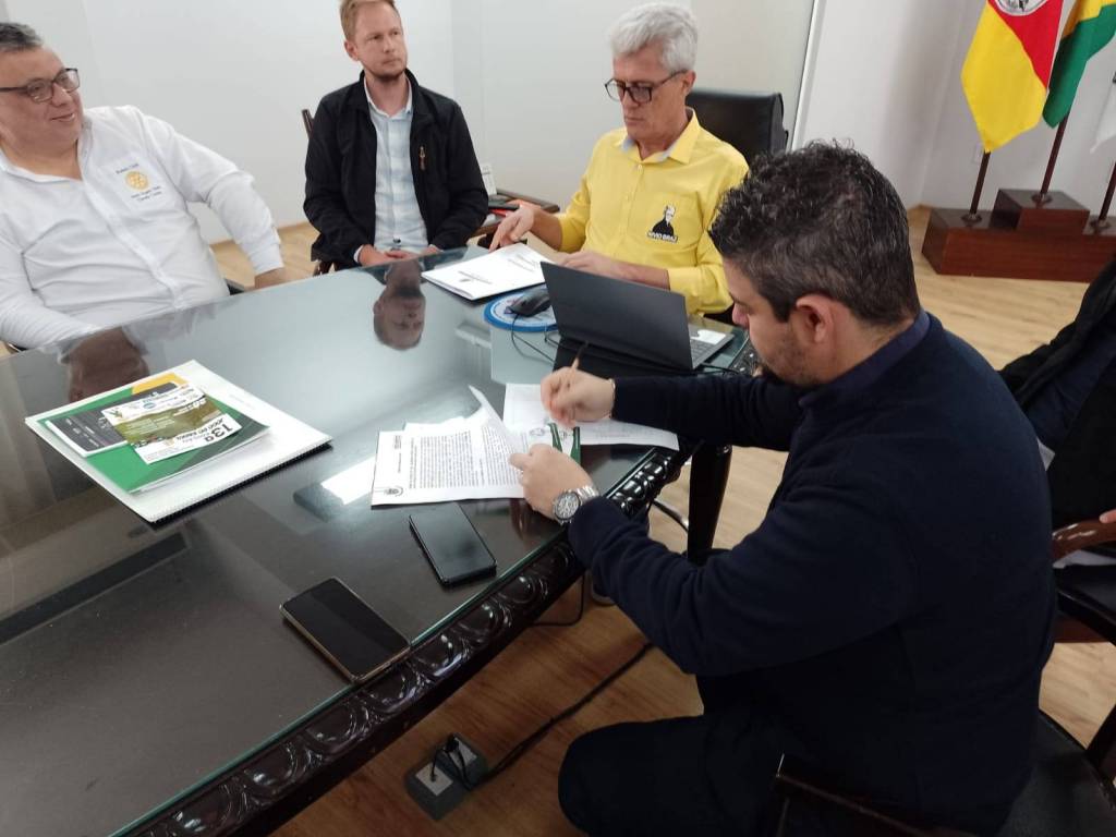Hoje, nosso presidente Alamir Reis Fischer e uma comissão do Rotary Club de Santo Ângelo Norte, estiveram em audiência com o prefeito Nívio Braz e com o secretário de Meio Ambiente, André Pedroso, ocasião em que foi assinada a cessão da área destinada à construção da nossa futura sede administrativa e de eventos.