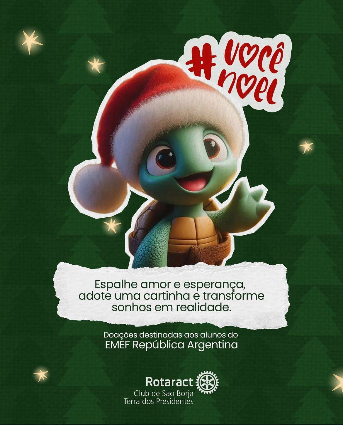 Com isso, o Rotaract Club São Borja Terra dos Presidentes lança a 6ª edição do projeto #VocêNoel, com o objetivo de levar alegria, esperança e amor aos alunos da EMEF República Argentina. Desde o início do projeto, já foram mais de 850 sonhos realizados — e neste ano queremos ir ainda mais longe, com mil crianças contempladas com este grande projeto. E você pode fazer a sua parte, adotando uma cartinha e ajudar a realizar o sonho de uma criança neste Natal. Entre em contato pelo nosso instagram @rotaractsaoborja ou através dos nossos voluntariados. Abrace essa causa e seja Você Noel.