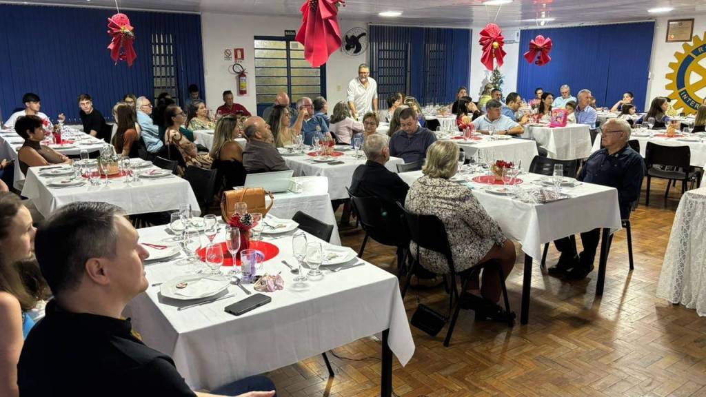 Momento importante para relembrarmos as boas ações que fizemos em nossa comunidade durante o ano de 2025, tais como: Projeto Veja Bem Gurizada e Banco de Ortopédicos do Rotary, Arborização da praça no Bairro Juventude e a Casa da Amizade com o Projeto "Acolher para Renovar" que é desenvolvido na ala de saúde mental do Hospital Santa Bárbara Beneficente, entre outras, o que fortalece em todos os participantes a vontade de continuar a fazer o bem sem olhar a quem.