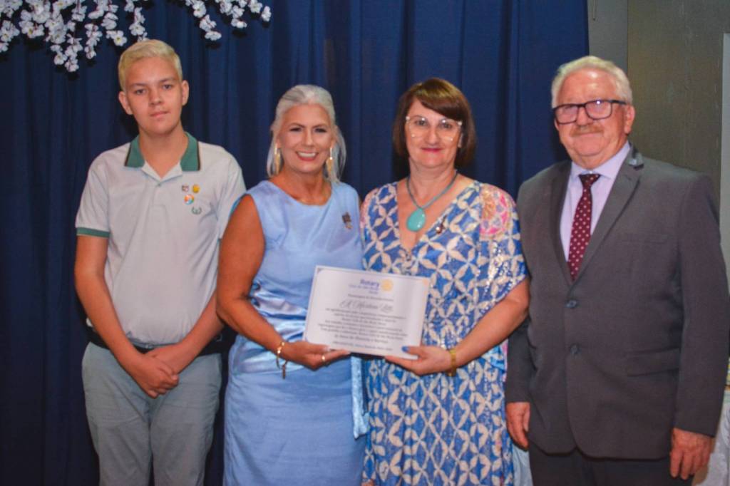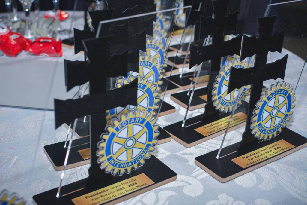 A programação incluiu a entrega de troféus e placas de reconhecimento a ex-presidentes, colaboradores e membros da atual diretoria, reforçando o compromisso do Rotary Club de São Borja Norte com o serviço comunitário, a união e a continuidade de seus valores históricos.