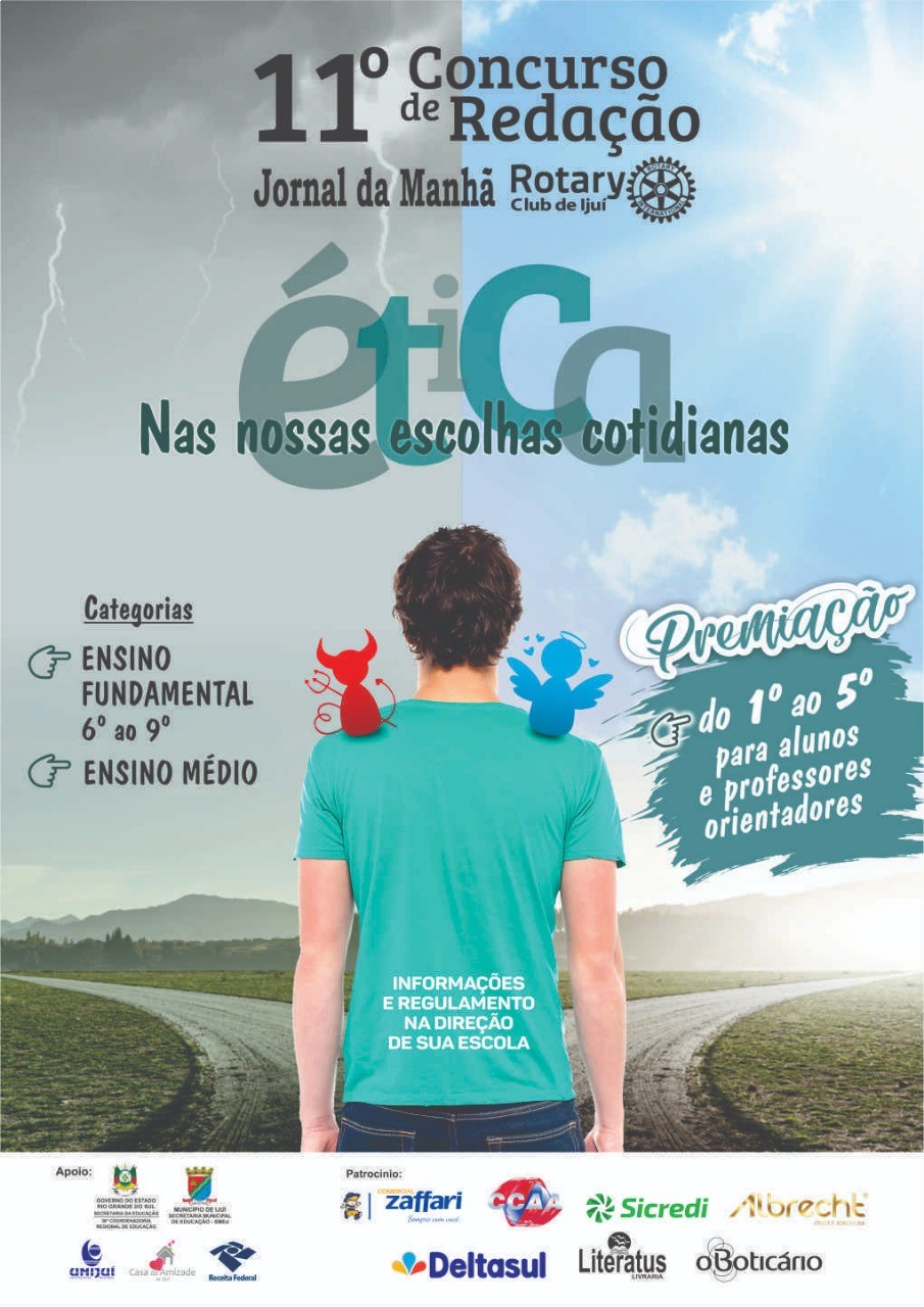 O concurso de redação do Rotary Club de Ijuí e Jornal da Manhã tem como objetivo principal promover a leitura, a pesquisa e o debate entre os estudantes. O tema escolhido para esse ano buscou provocar os estudantes a pensarem na situação pela qual passa nossa sociedade nos dias de hoje, os quais surpreenderam positivamente com belíssimas obras.