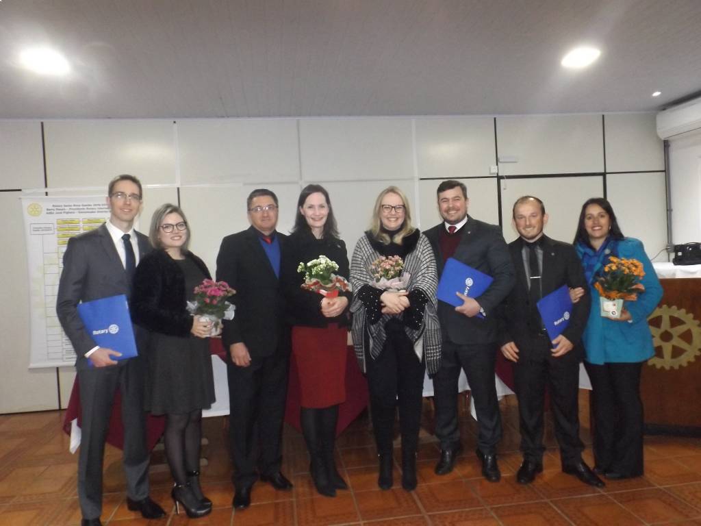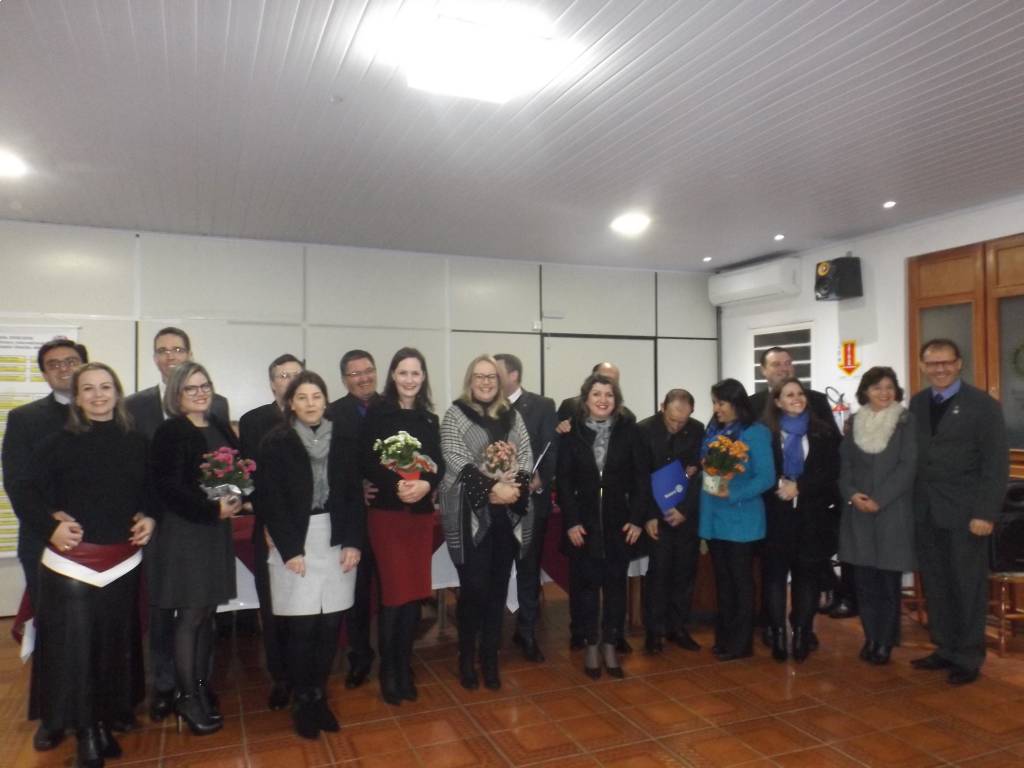 Nosso protocolo companheiro CARLOS ROBERTO NASI, narrou a mesa diretiva composta pelo companheiro Presidente CLAUDIO HOFLER, Vice-Presidente companheiro MIGUEL HADAS , secretario Companheiro VLADIMIR MADALOSSO DA ROSA e convidado governador Assistente companheiro JACOB LUCIANO GAUER. De imediato fora feito a o cerimonial de posse dos novos companheiros: