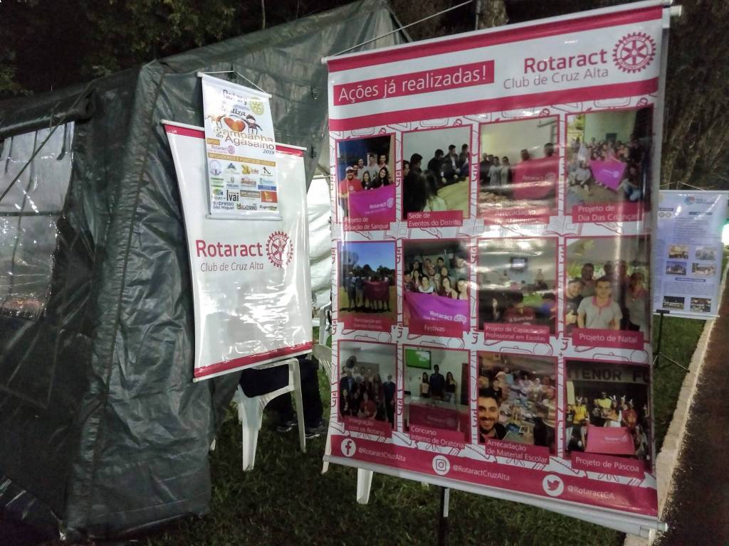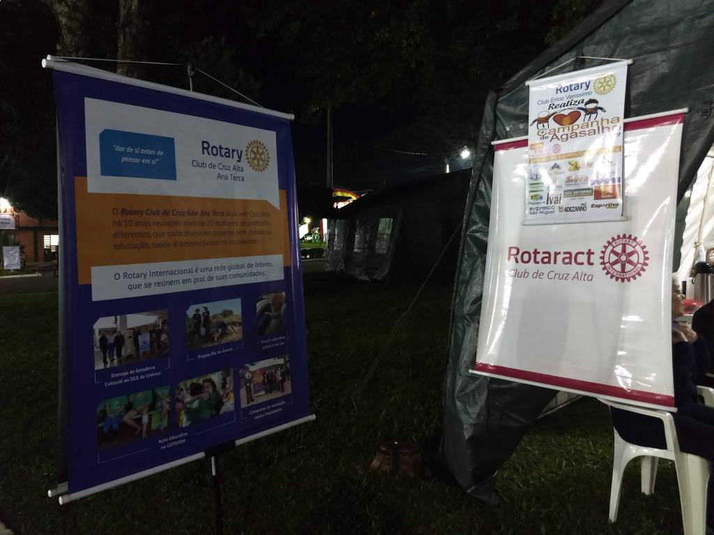 Ambos estiveram nos 5 dias da feira expondo aos visitantes suas ações que são realizadas junto a comunidade cruzaltense. Como o Projeto do Rotary Club Érico Veríssimo no Lajeado da Cruz e Campanha do Agasálio que tem o apoio do Rotaract. Como também as ações do Rotary Club Ana Terra com as ações junto a Cotefem, plantio de árvores e demais projetos já realizados. Entre as ações do Rotary Club de Cruz Alta se destacam as benfeitorias já realizadas junto ao Hospital de São Vicente de Paulo, Asílio Santo Antônio, auxílio ao CIEP entre outros. Já o Rotaract Club expôs as ações que foram realizadas no último ano, como Projeto de Páscoa, Dia das Crianças, Natal além de desenvolvimento interno como oratória e de alunos de escolas do munícipio.