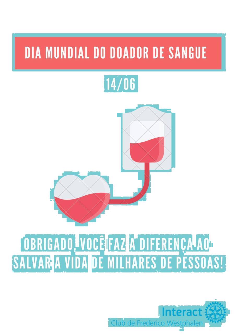 Dia 14 de junho é o Dia Mundial do Doador de Sangue. Queremos agradecer a todos os doadores e doadoras, por esse ato magnífico que é poder salvar vidas. E também concientizar aos não doadores a importância dessa atitude, pois em uma única doação é possível salvar quatro vidas!