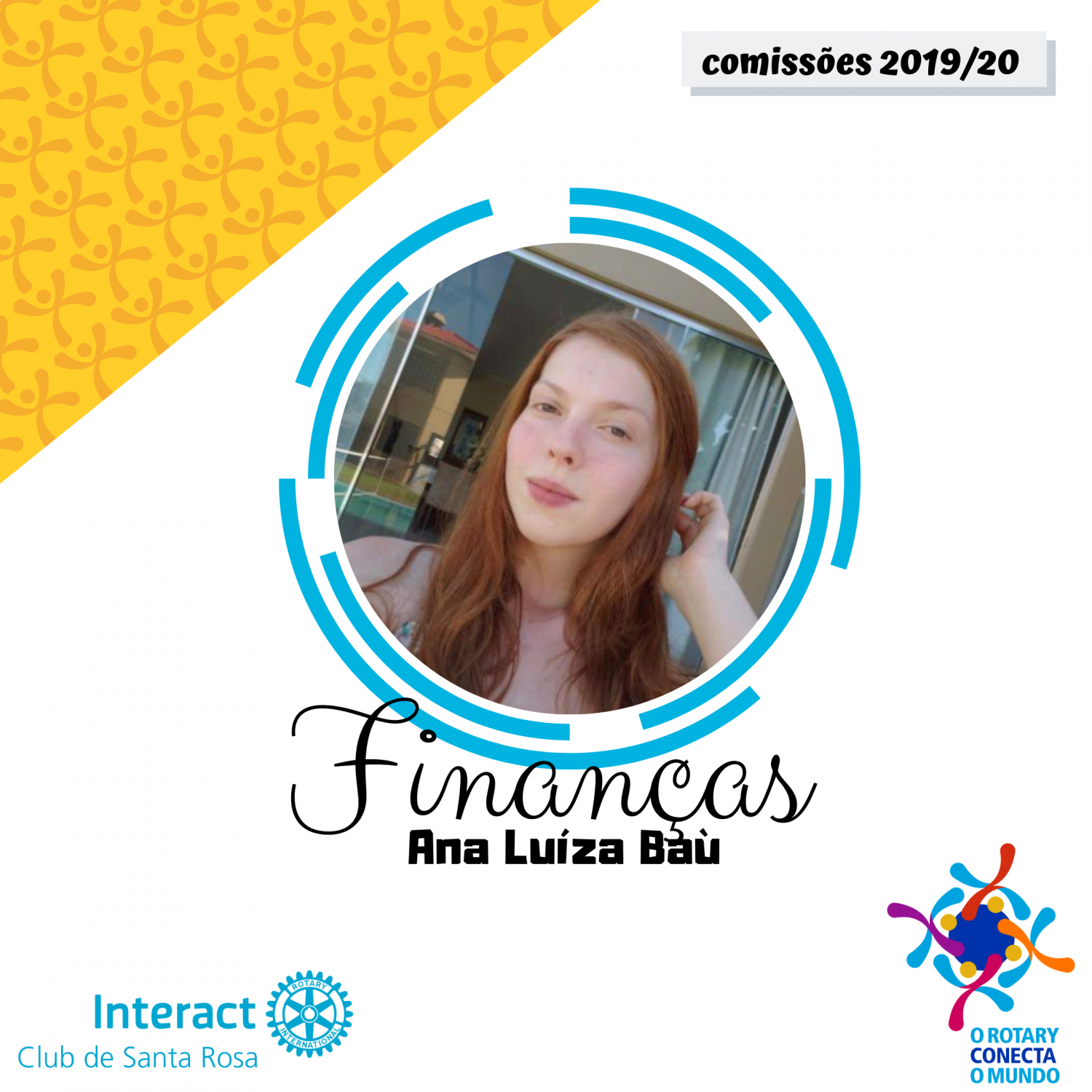 Para trabalhar ao lado da Tesouraria nessa gestão, teremos a companheira Ana Luíza Baú a frente da Comissão de Finanças. Ana é sócia desde 14/09/2018 e tem o importante papel de fazer com que o caixa do clube tenha um bom fluxo>