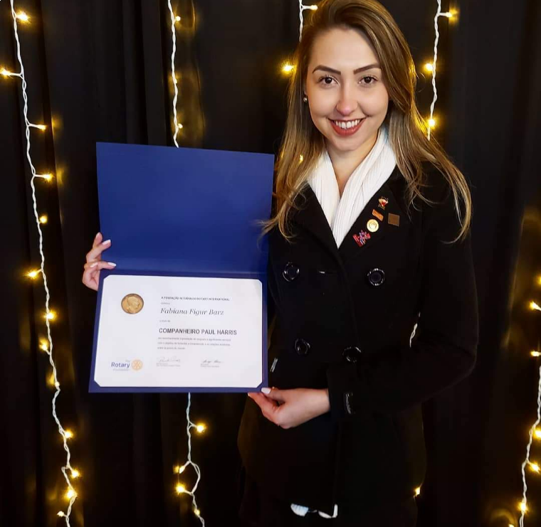 E no final da cerimônia, o momento mais aguardado pelo nosso clube chegou, nossa companheira Fabiana Barz foi agraciada com um título Companheiro Paul Harris.
